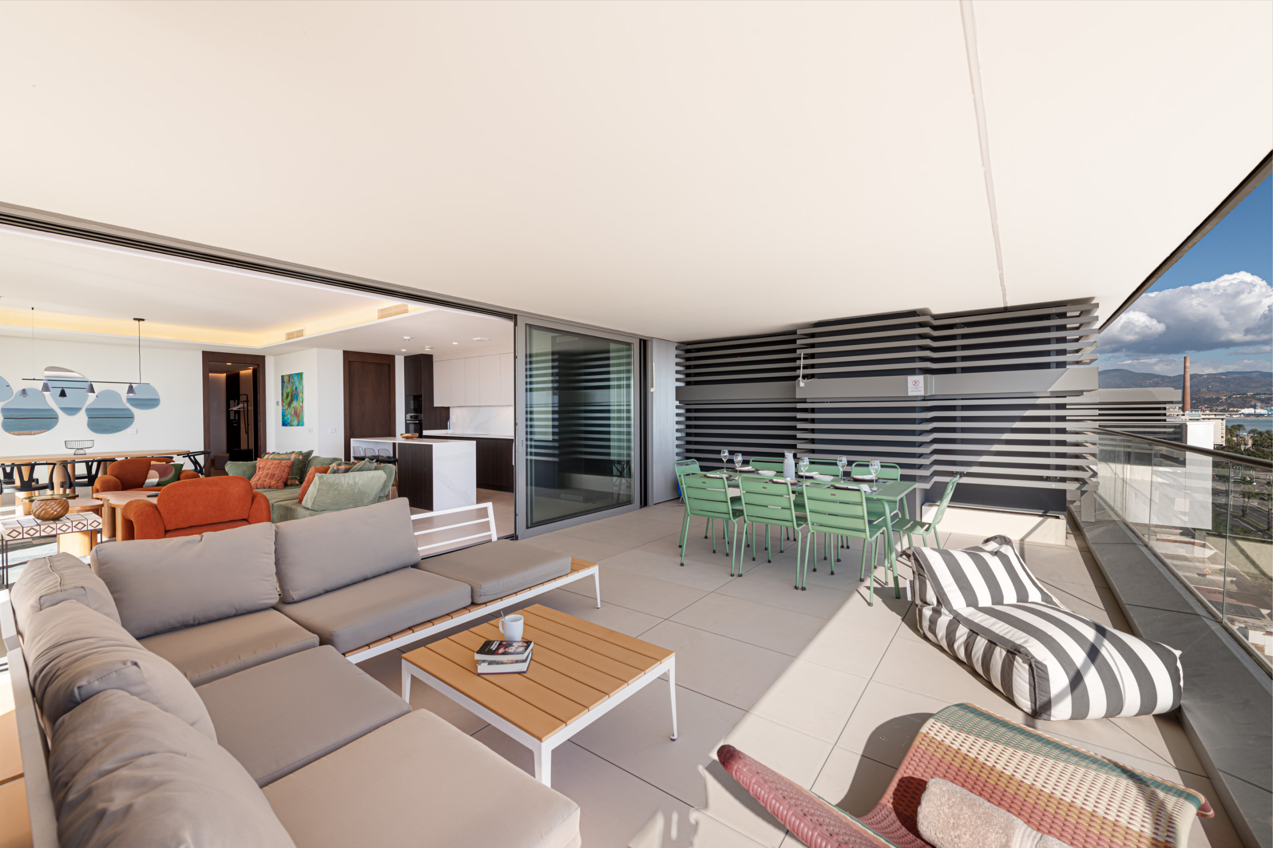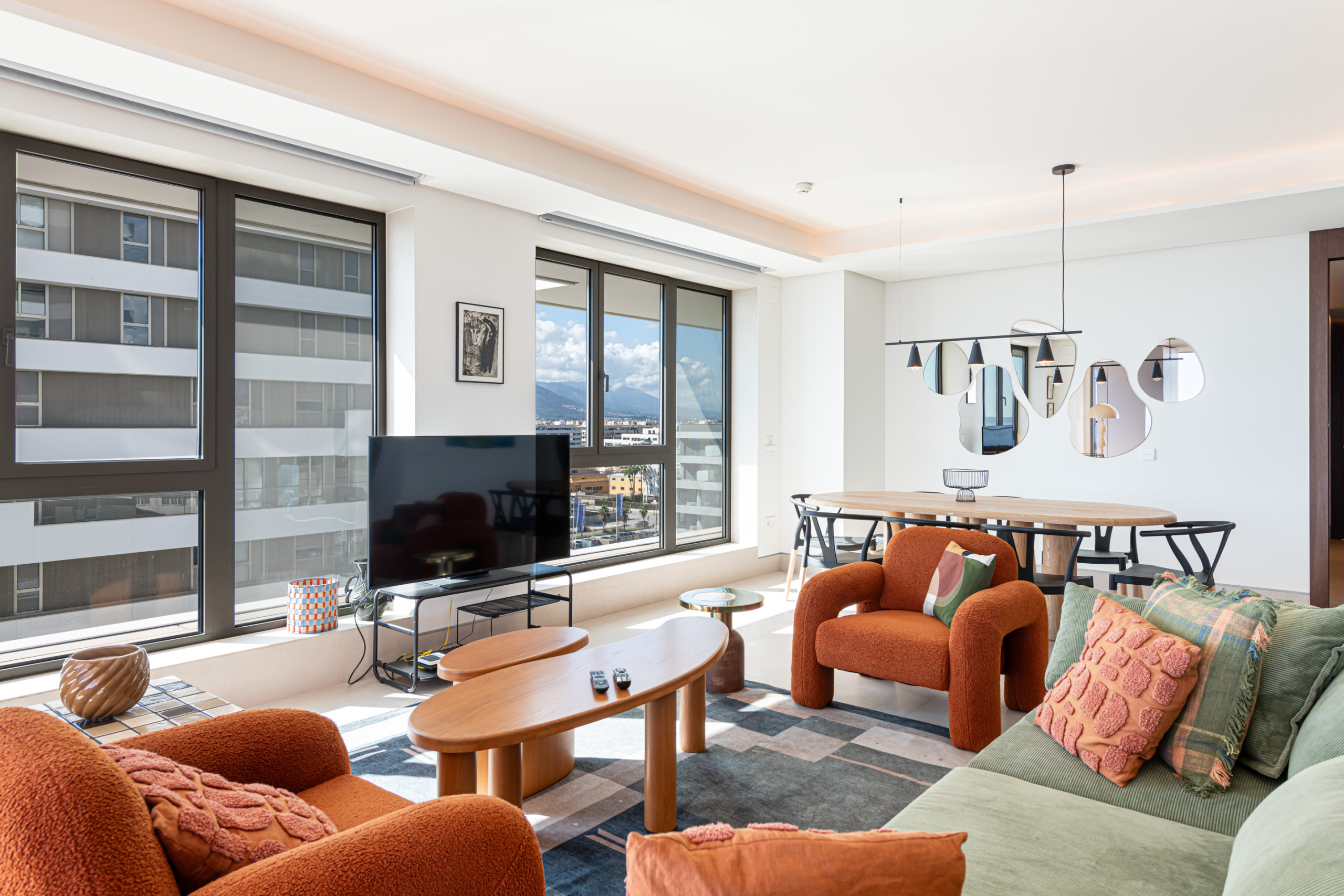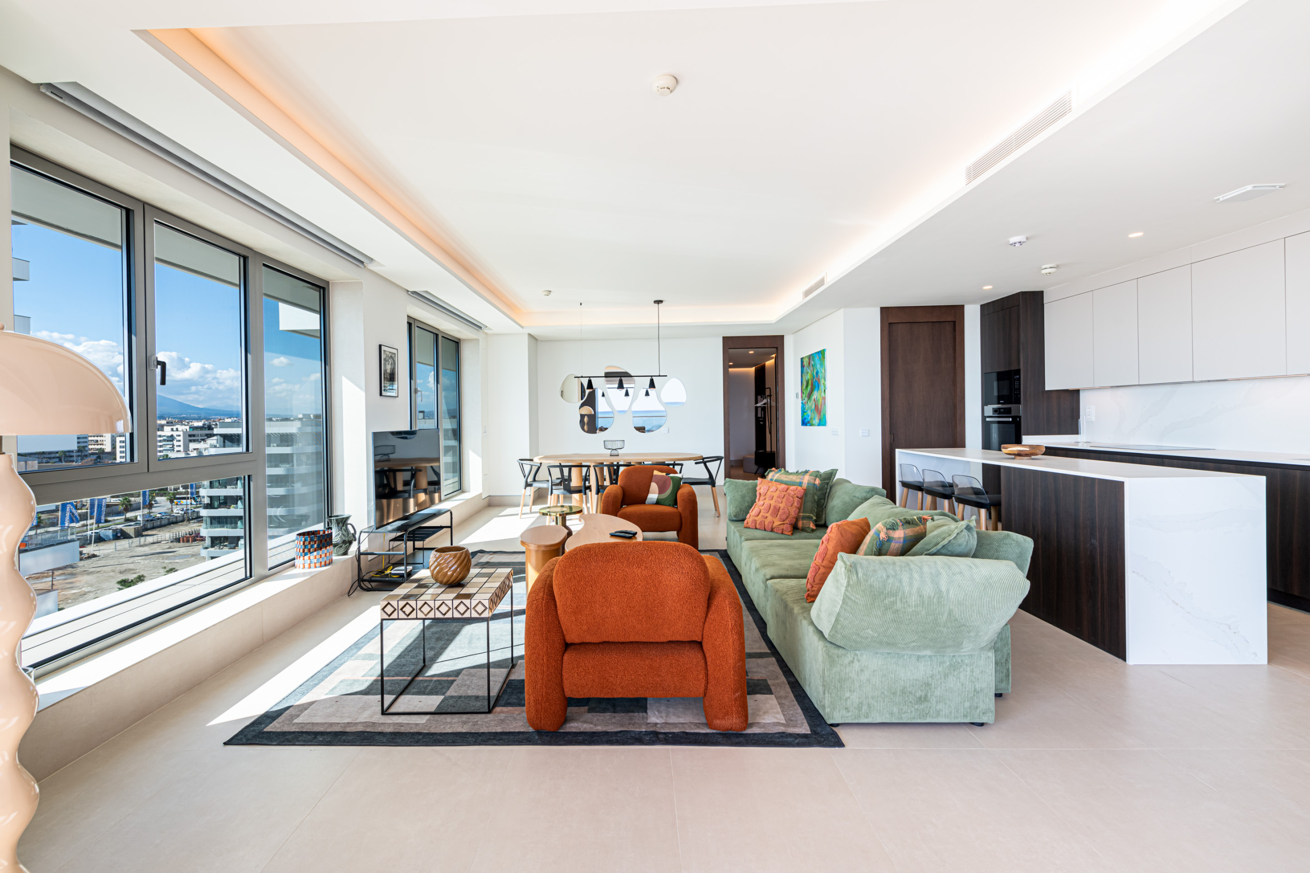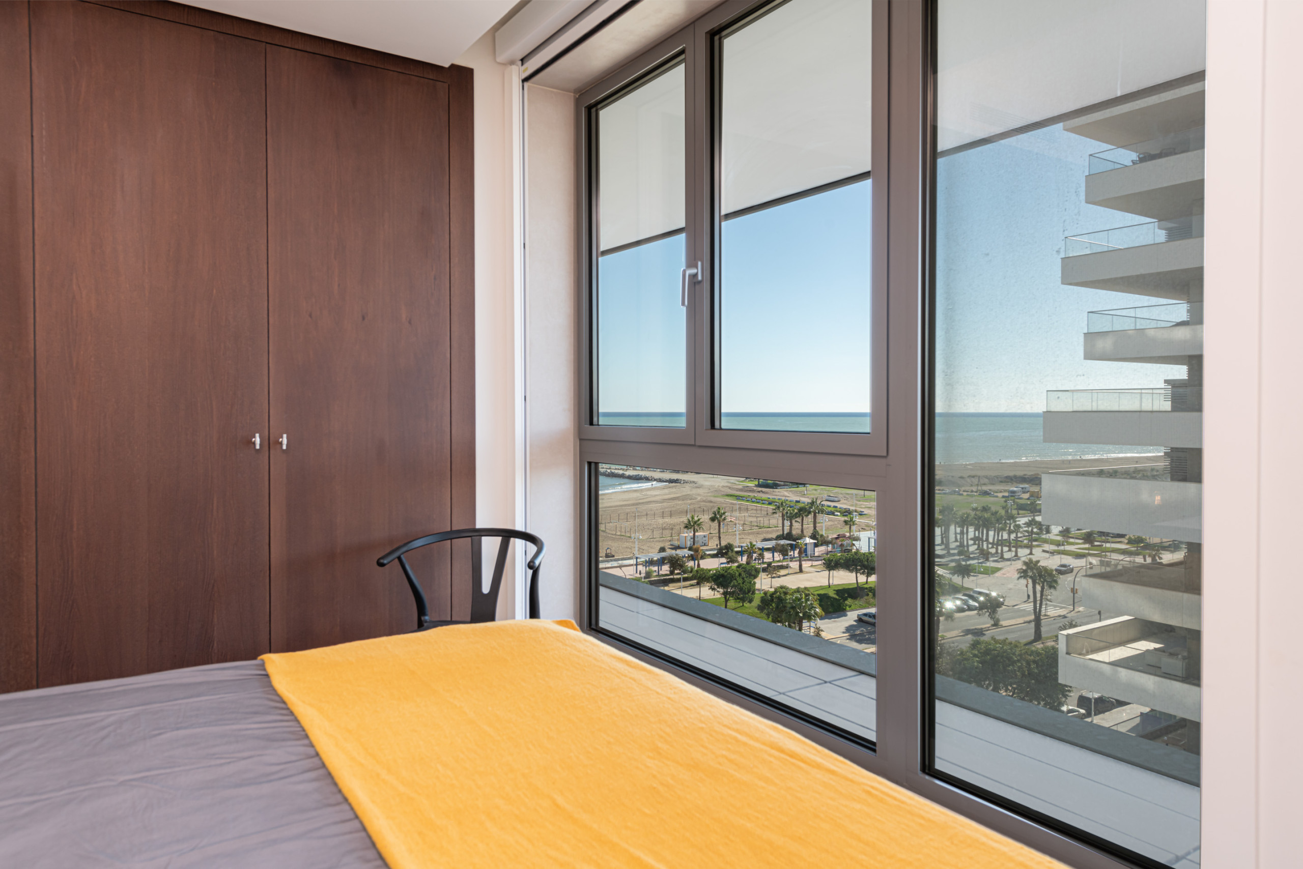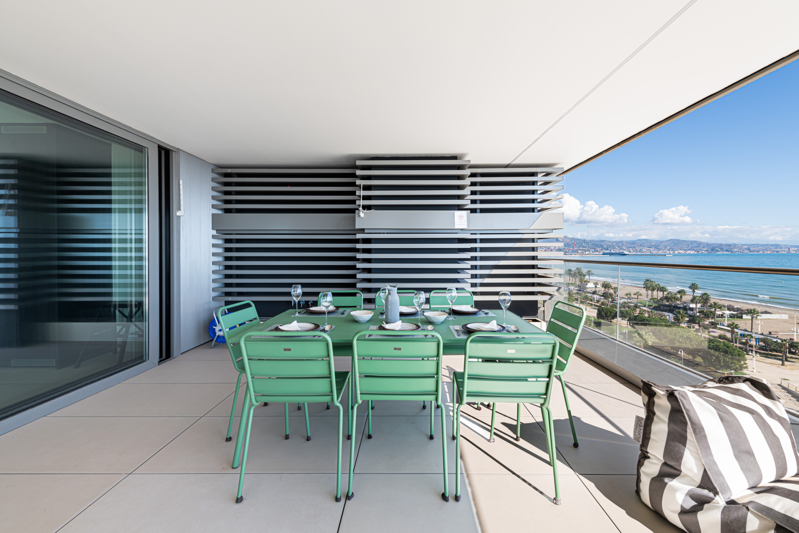 Disponible para alquiler tanto en régimen de larga temporada como por temporadas más cortas. Se exige un solo mes de fianza. ¡OFERTA! Precio de 4.900 € al mes hasta el 31 de marzo de 2026. A partir del 1 de abril de 2026 el precio mensual del alquiler es de 7.500 €. ¡Consúltanos nuestras ofertas personalizadas! ¡Estupendo apartamento amplio y lujoso en primera línea de playa con vista frontal al mar! Esta vivienda, ubicada en el recién estrenado edificio Málaga Tower, destaca por su arquitectura innovadora y sus excepcionales equipamientos. El complejo cuenta con cuatro piscinas comunitarias, incluyendo una espectacular piscina infinity al aire libre en la planta 21, desde donde se disfrutan vistas panorámicas de la ciudad de Málaga, las montañas y el mar Mediterráneo. Además, dispone de una piscina climatizada, otra piscina exterior y una segunda piscina climatizada dentro del SPA, junto con gimnasio comunitario, sala de masajes y ludoteca infantil. La propiedad ofrece tres dormitorios, dos cuartos de baño completos y un aseo, además de un impresionante salón con mesa de comedor, sofá, televisión y cocina americana totalmente equipada. En caso de que necesite teletrabajar, el tercer dormitorio puede convertirse en despacho con mesa y silla de escritorio. Destaca su amplia terraza privada de 40 m², perfectamente acondicionada, desde la que podrás disfrutar de una bonita vista de la ciudad y las montañas, además de un precioso sol de la tarde que tiñe el cielo de colores cálidos. Aunque no ofrece una vista directa al mar desde esa terraza, el ambiente es ideal para relajarse y contemplar el atardecer. La vivienda también dispone de una segunda terraza de 12 m² con vistas a la ciudad y a la montaña en la que podrás disfrutar del sol del atardecer. El apartamento cuenta con un diseño contemporáneo y acabados de alta calidad, así como un sistema de domótica que permite controlar la iluminación, los estores y la climatización de forma eficiente. Además, se puede cambiar la temperatura individual en cada habitación, para un confort totalmente personalizado. El alquiler incluye trastero y una plaza de garaje amplia con zona de carga para vehículos eléctricos. Existe la posibilidad de solicitar una segunda plaza (consultar precio). Su ubicación privilegiada te permite disfrutar del Paseo Marítimo Antonio Banderas y la playa, estando además muy bien comunicado con el centro de Málaga y el aeropuerto.