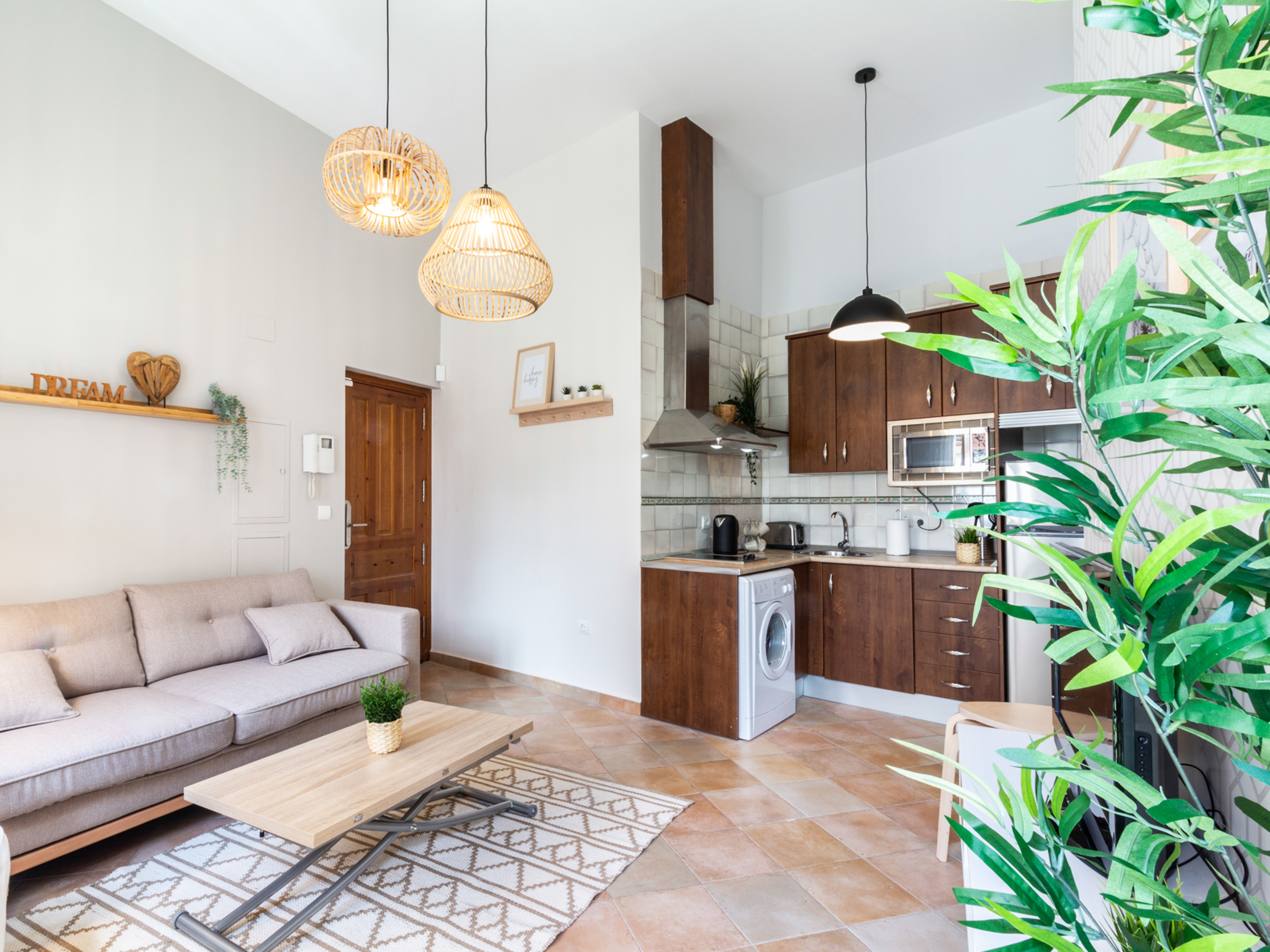 Fabuloso ático cerca del centro histórico de Granada, situado a un paso del Albaicín. Un apartamento luminoso y acogedor que combina el encanto tradicional —techos de madera con vigas vistas— con todas las comodidades modernas. Dispone de dos dormitorios dobles (uno con cama de matrimonio y otro con dos camas individuales), un baño completo y un salón-cocina totalmente equipado con aire acondicionado, WiFi y zona cómoda para teletrabajar.