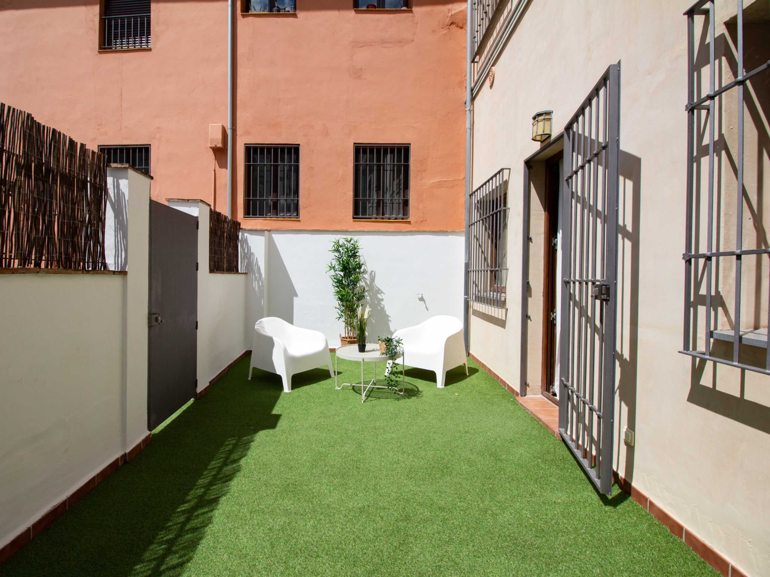 El gran valor del apartamento es su agradable terraza privada, perfecta para disfrutar de desayunos al sol o cenas al aire libre con vistas al encantador patio andaluz del edificio, un espacio tranquilo y muy fotogénico. El edificio cuenta con ascensor, llegada autónoma mediante cerradura con teclado y posibilidad de cuna, lo que lo hace ideal tanto para escapadas románticas como para estancias en familia.