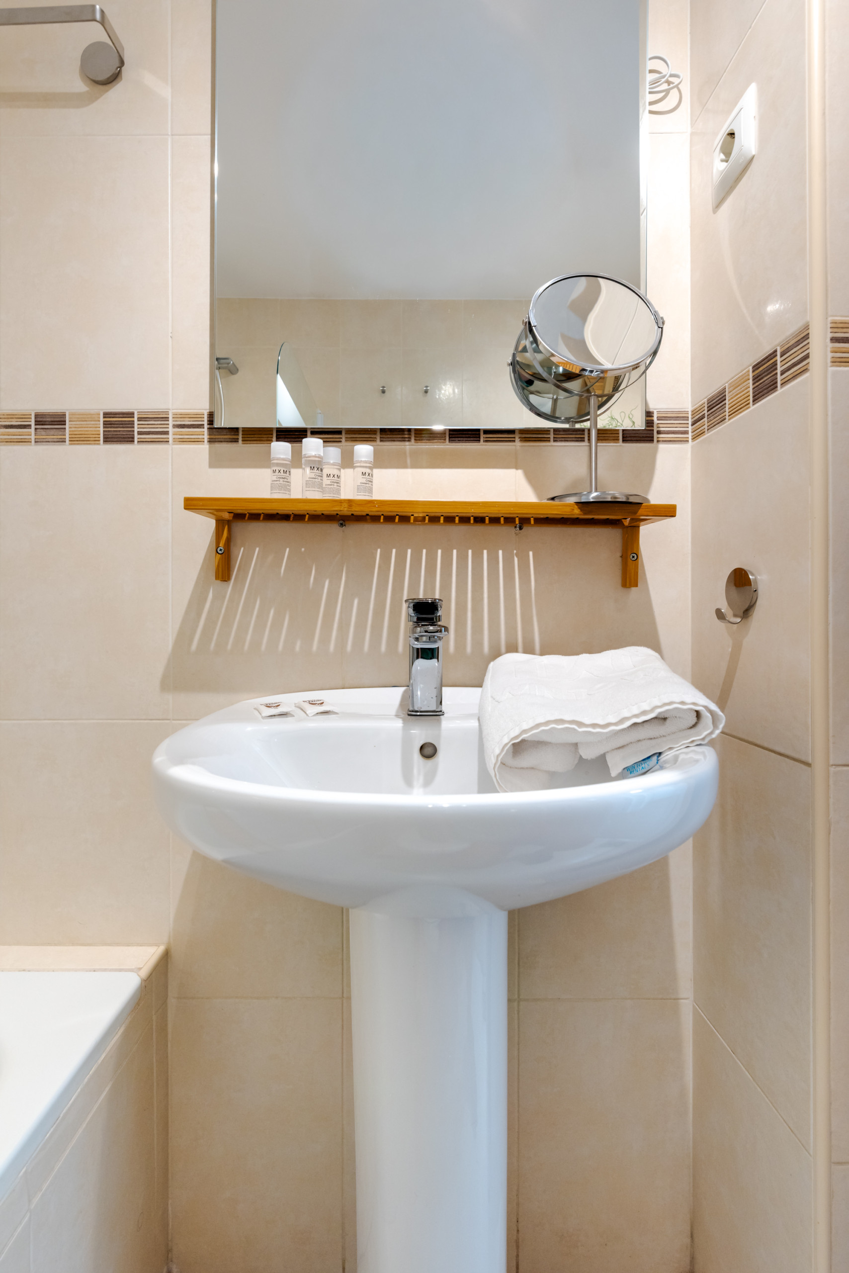 Así como en el salón podréis disfrutar de un cómodo sofá donde charlar y ver la televisión en la Smart Tv. Además, dispone de baño privado con ducha en el que incluimos secador de pelo. Todas las instalaciones son privadas excepto la lavadora, que se encuentra ubicada en las zonas comunes, en un espacio destinado para ello que se comparte con otros huéspedes, arriba en la terraza comunitaria del edificio.