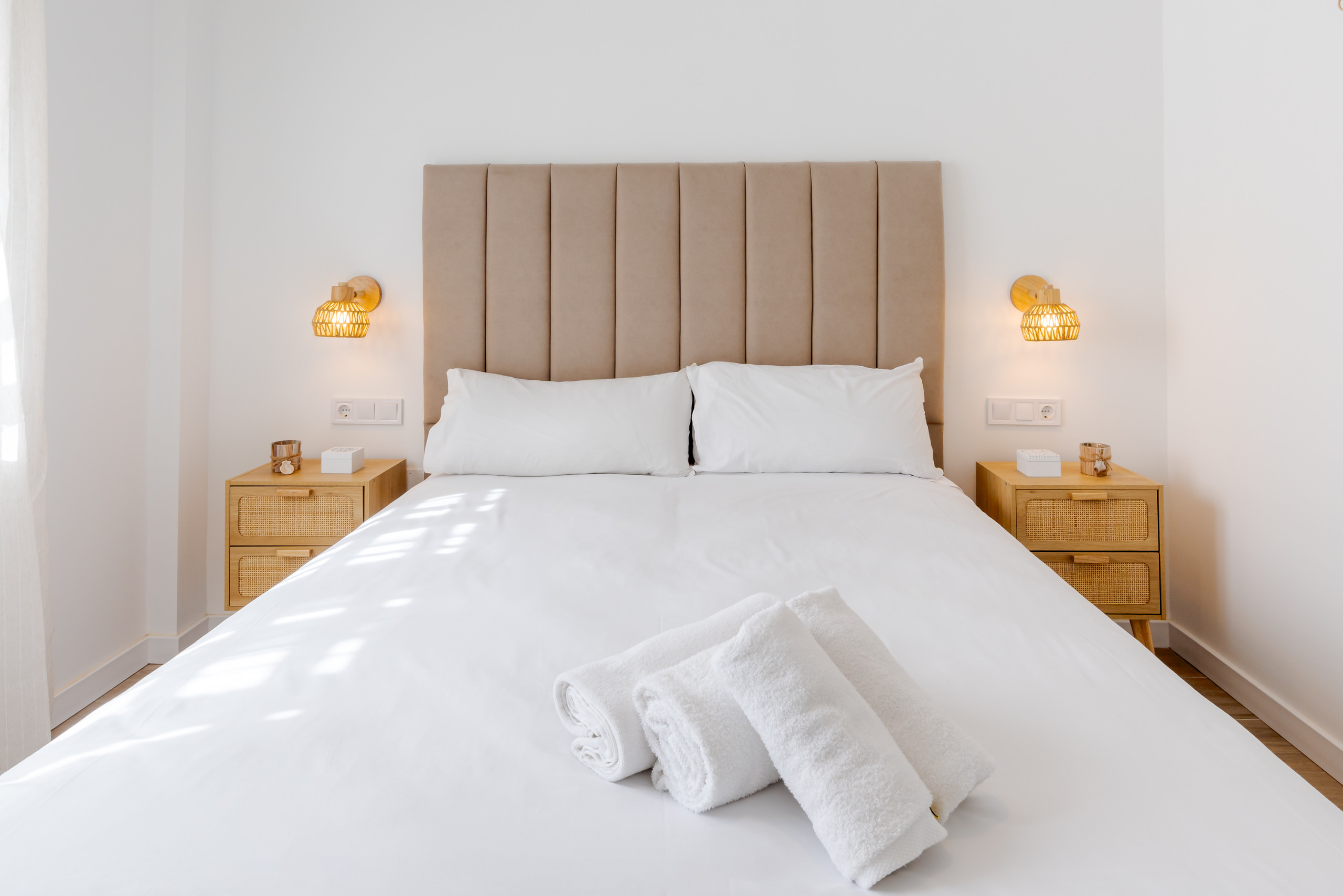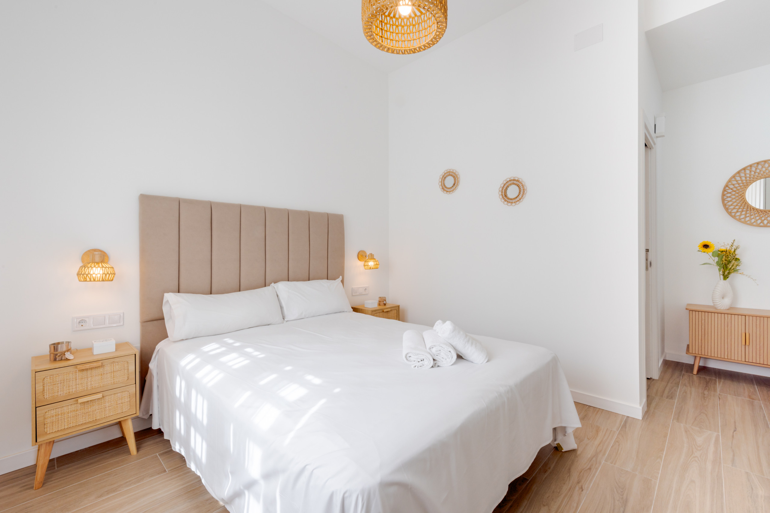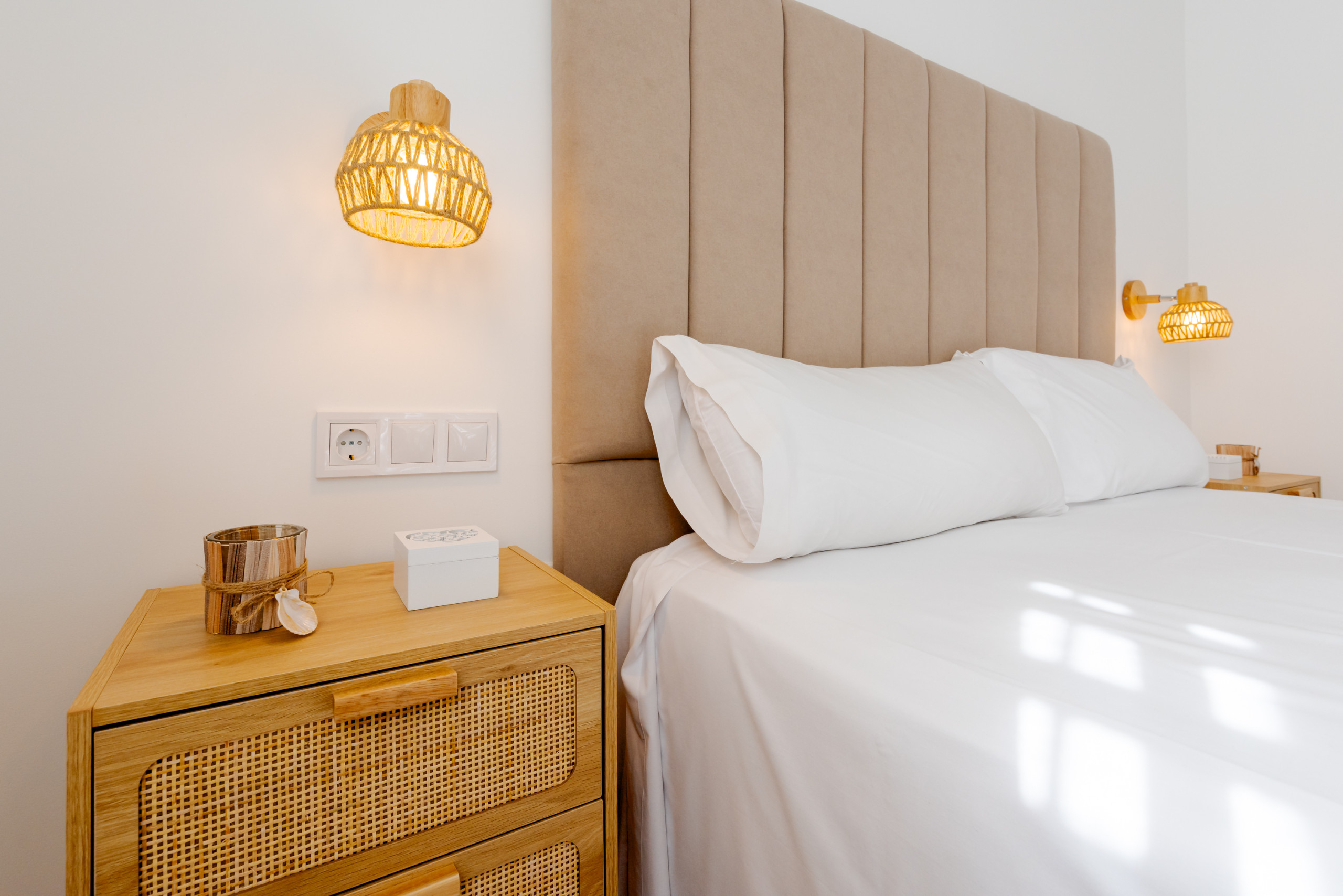 - Uno con una cómoda cama de matrimonio de 150 cm, ideal para relajarte después de un día de playa o turismo.