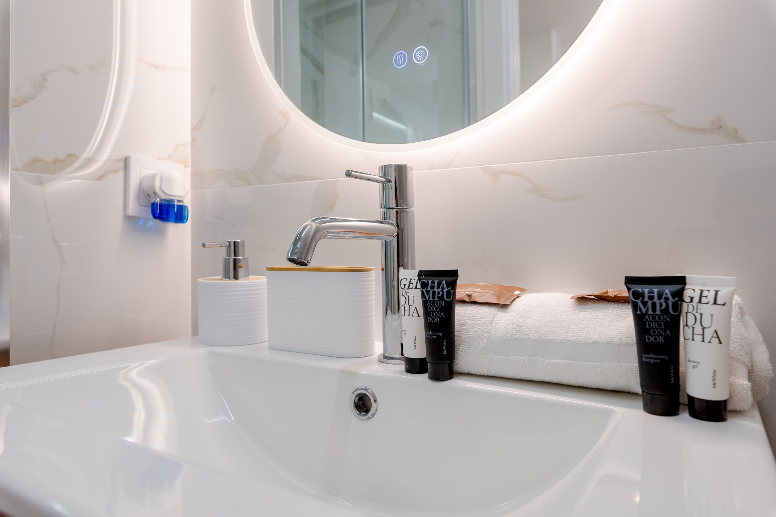 El edificio también cuenta con zona de lavandería exclusiva para nuestros huéspedes equipada con lavadora, secadora y zona de planchado.