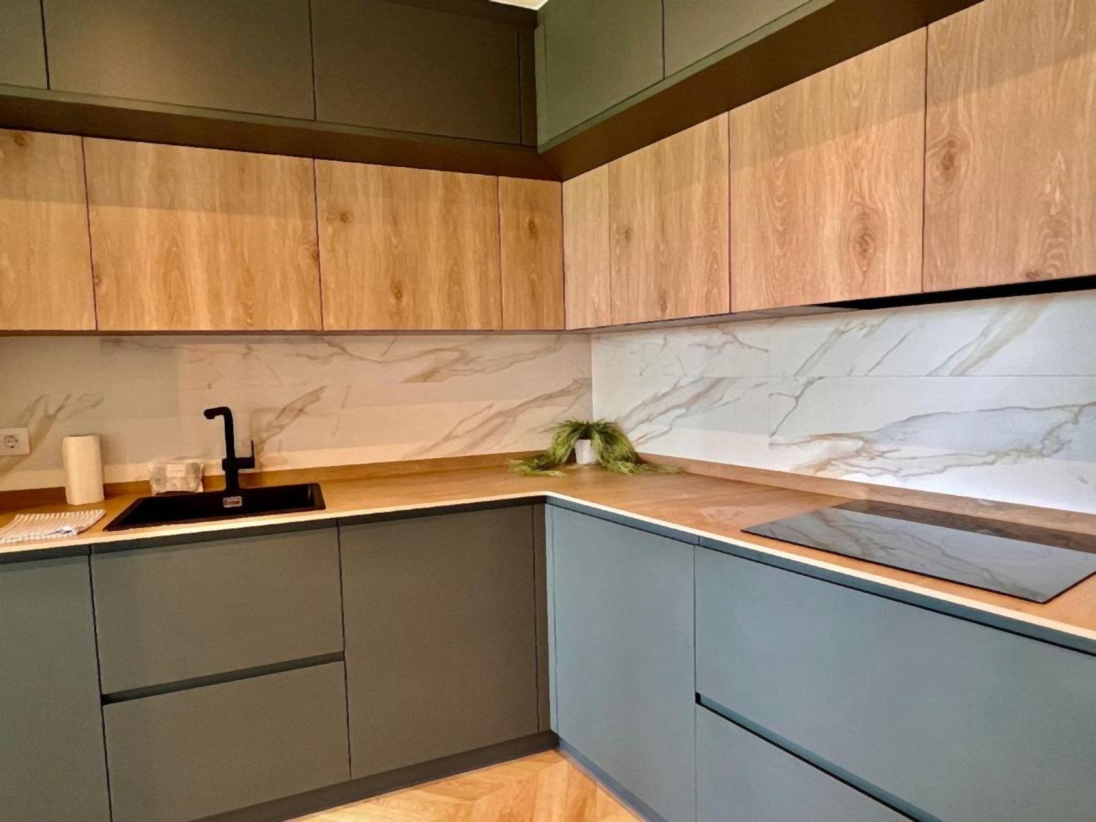 La cocina, totalmente equipada con electrodomésticos de última generación, incluyendo lavavajillas y secadora, se integra en un amplio y luminoso salón-comedor. Este espacio se convierte en el corazón del apartamento, perfecto para disfrutar de desayunos con vistas o relajarse mientras se contemplan las impresionantes vistas del entorno.