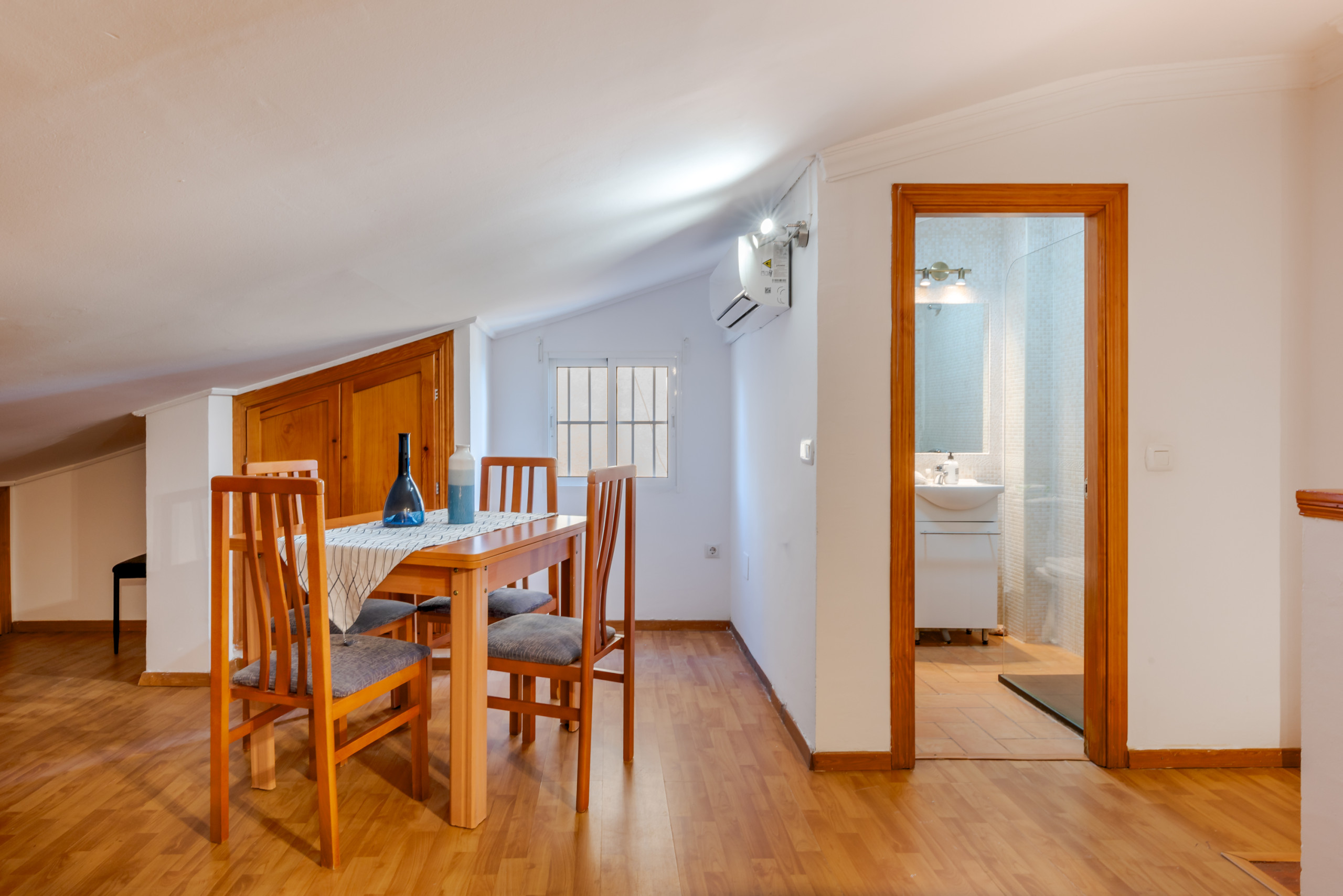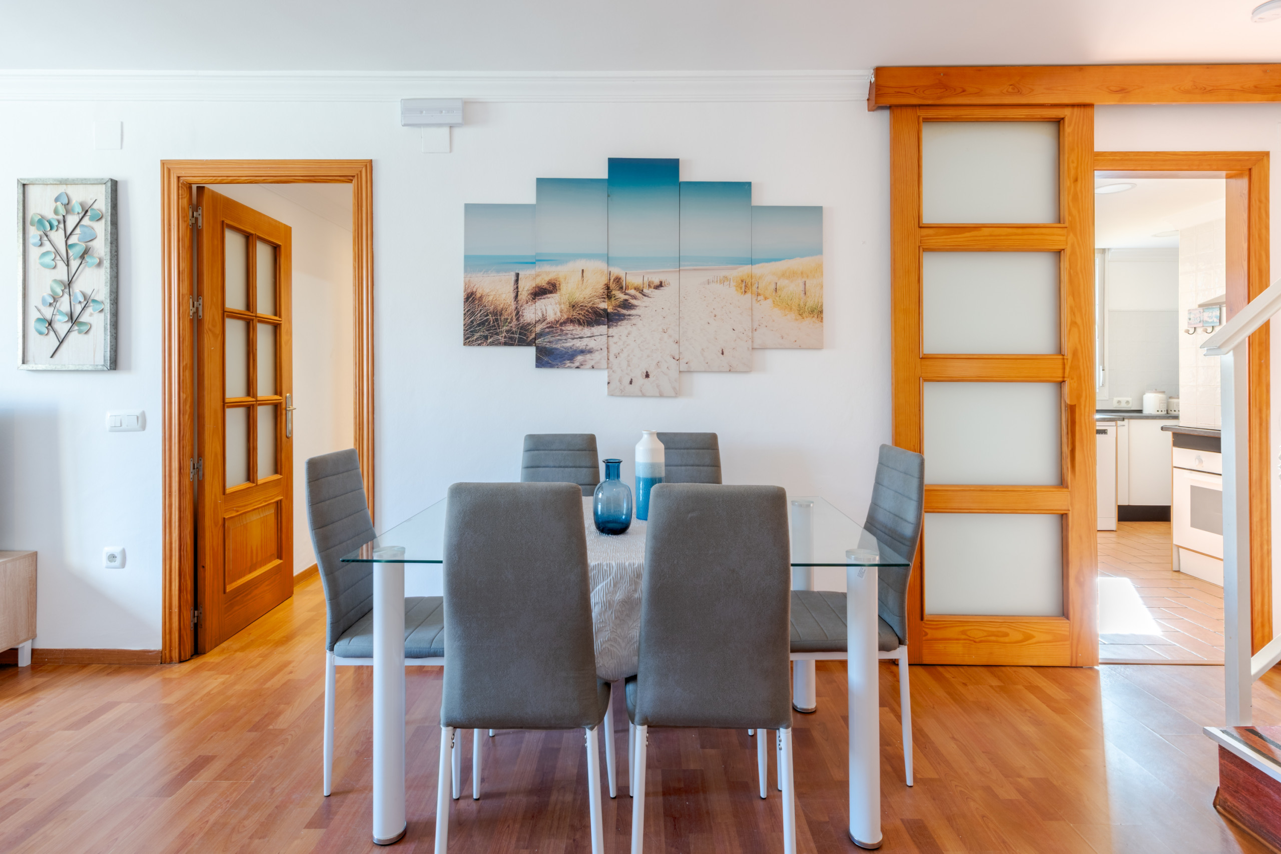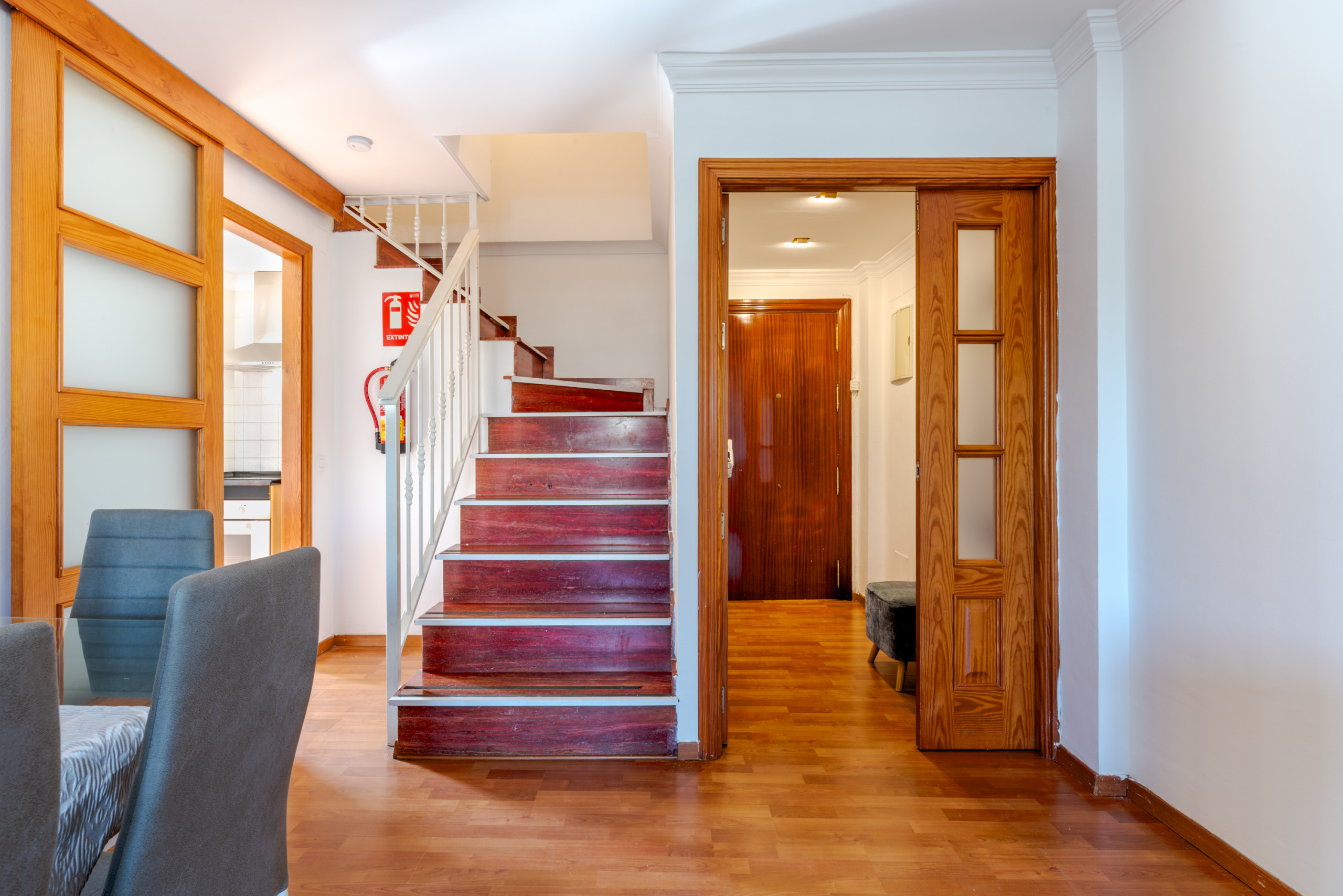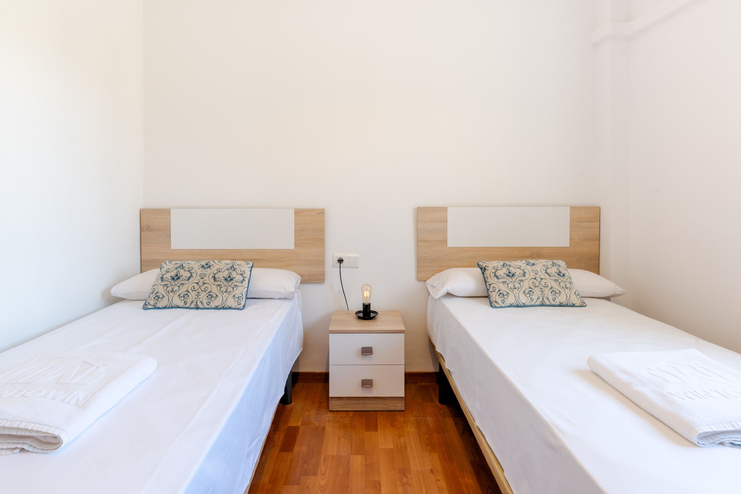 El apartamento posee 4 dormitorios y con una capacidad máxima para 8 personas, de los que cabe destacar dos dormitorios con cama de matrimonio, uno de ellos en la planta de arriba, y dos dormitorios con dos camas individuales cada uno.