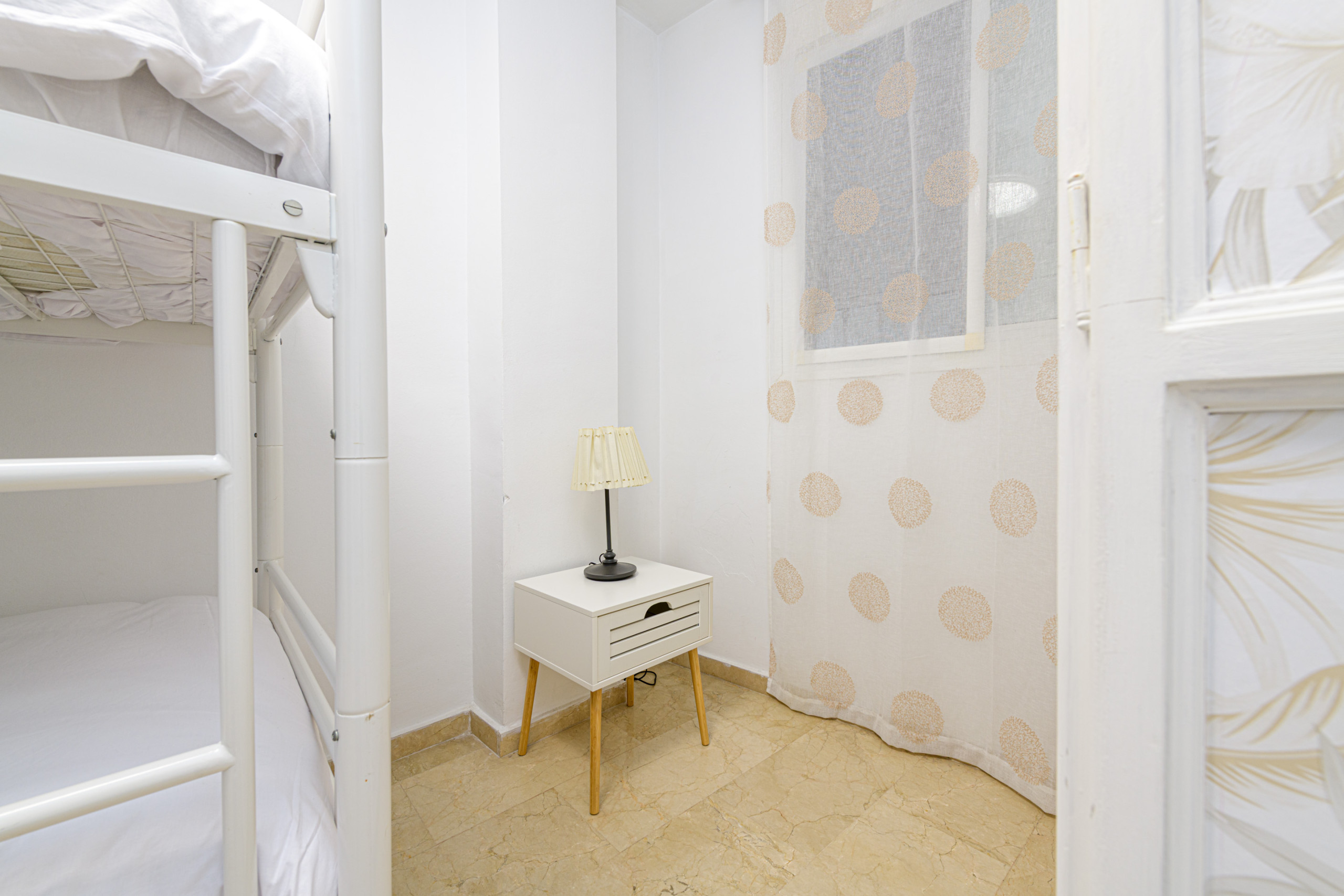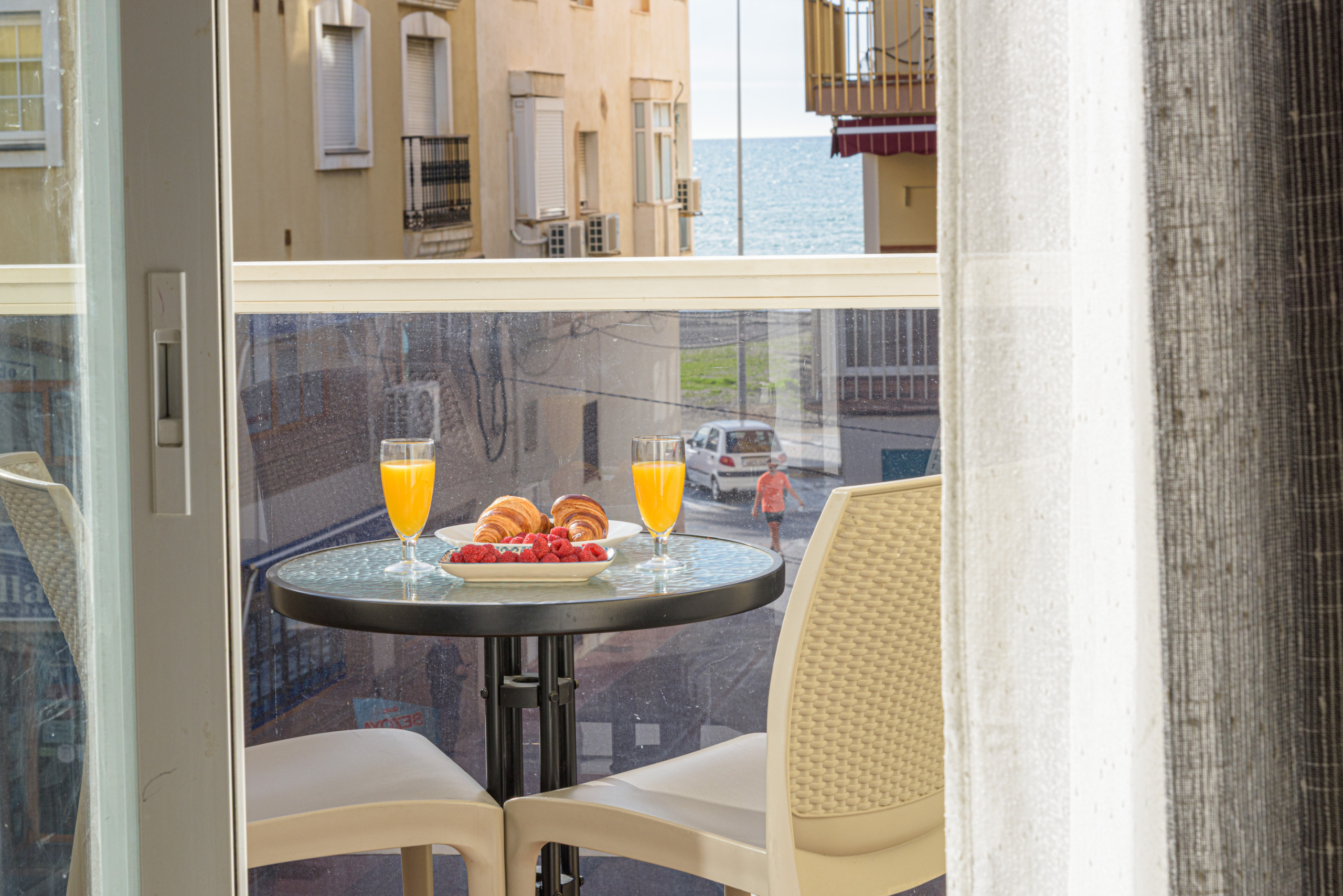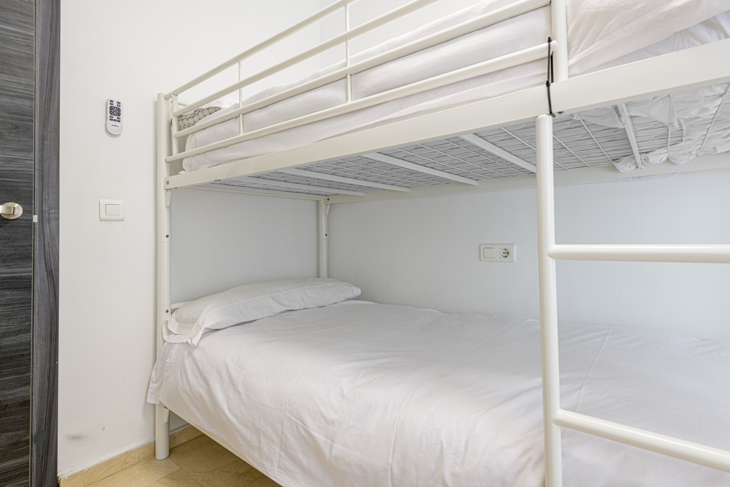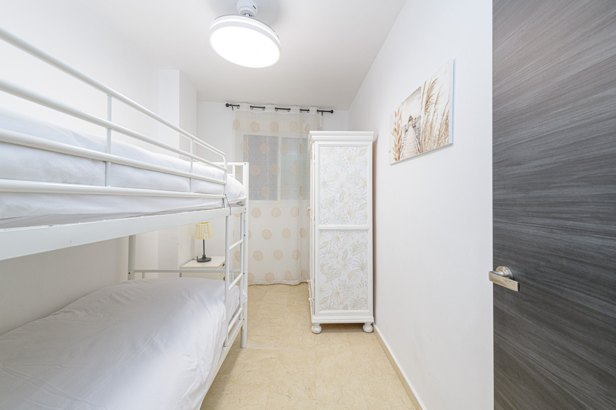 El apartamento dispone de un salón acogedor con Smart TV, conectado a una cocina americana totalmente equipada, dos dormitorios y un baño moderno con ducha. Desde el salón se accede a una coqueta terraza privada con ligeras vistas al mar, perfecta para relajarse después de un día de playa.