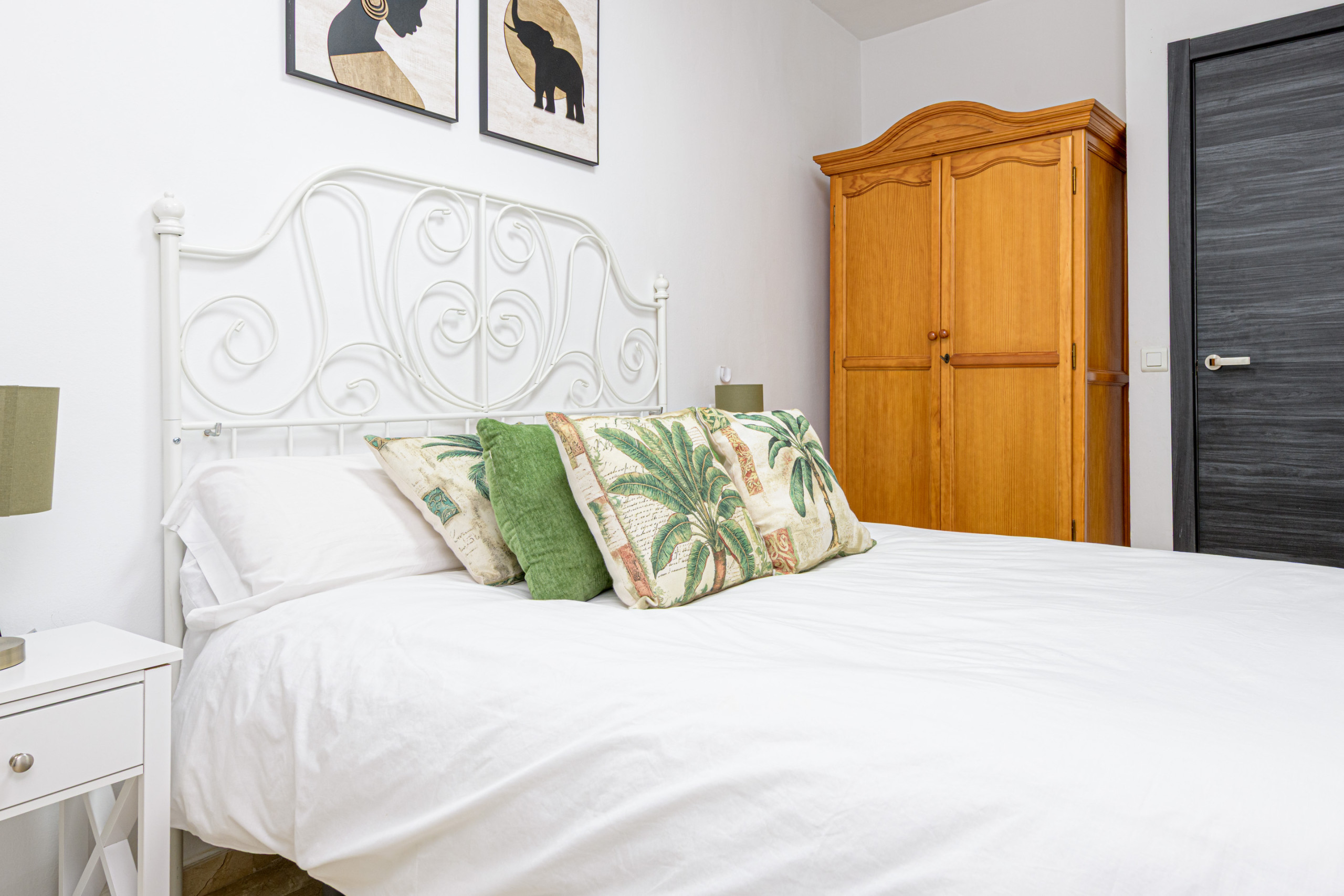 El apartamento cuenta con un salón luminoso con Smart TV, una cocina independiente totalmente equipada, un dormitorio con cama de matrimonio y un cuarto de baño con ducha. Además, dispone de un sofá cama en el salón, perfecto para dos personas. La cocina está equipada con todo lo necesario: placa vitrocerámica, horno, microondas, lavadora, hervidor de agua, tostador, cafetera y menaje completo. También se incluye plancha y tendedero para mayor comodidad.