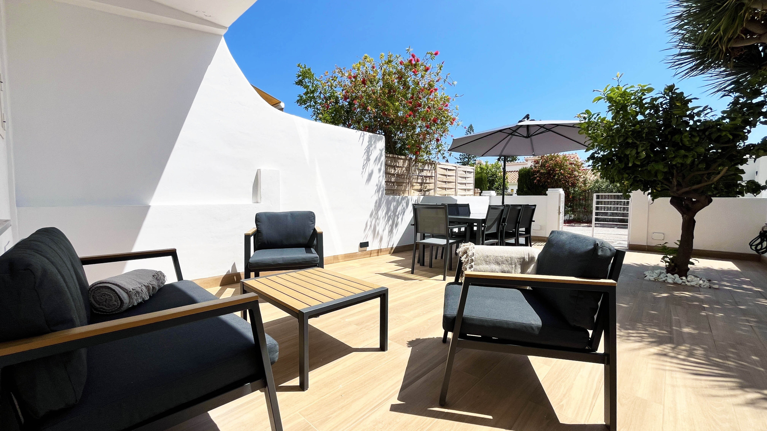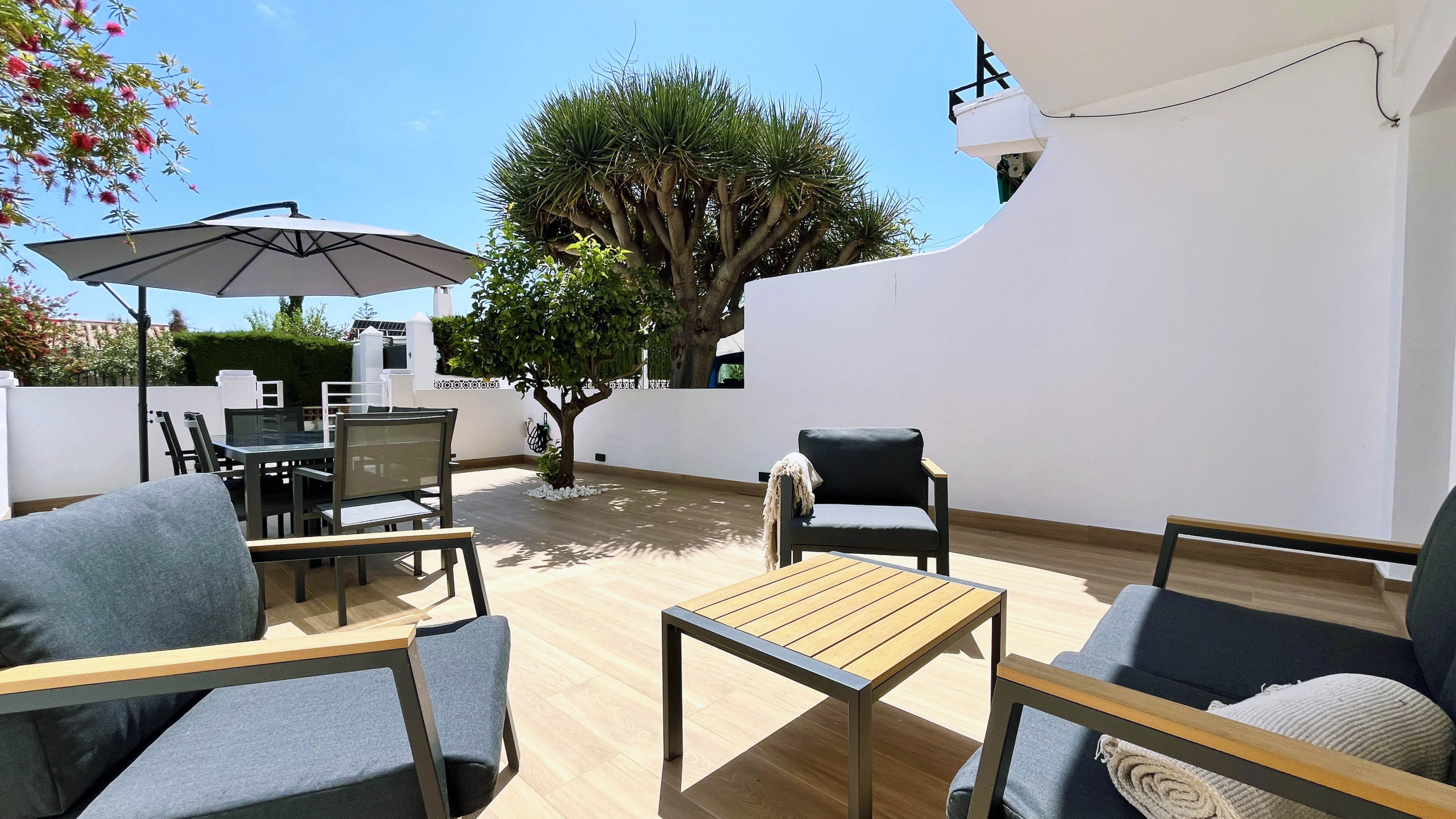 El interior ha sido recientemente renovado, combinando un estilo moderno y acogedor con todas las comodidades necesarias: amplios dormitorios, zonas comunes luminosas y una distribución pensada para el descanso. En el exterior destacan sus amplias terrazas privadas, perfectas para desayunar al sol, relajarse al aire libre o disfrutar de agradables veladas, incluyendo zona de comedor exterior y barbacoa.