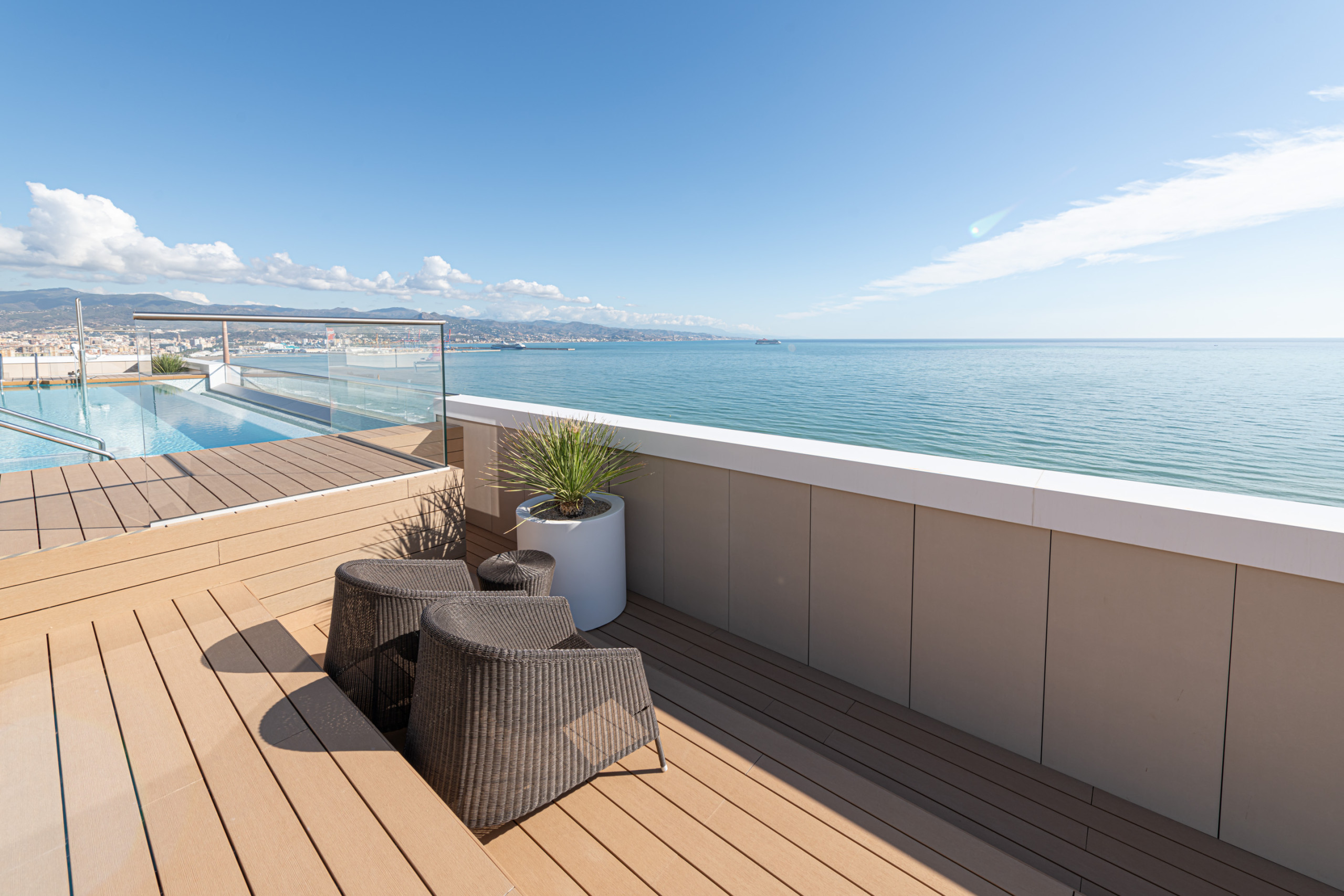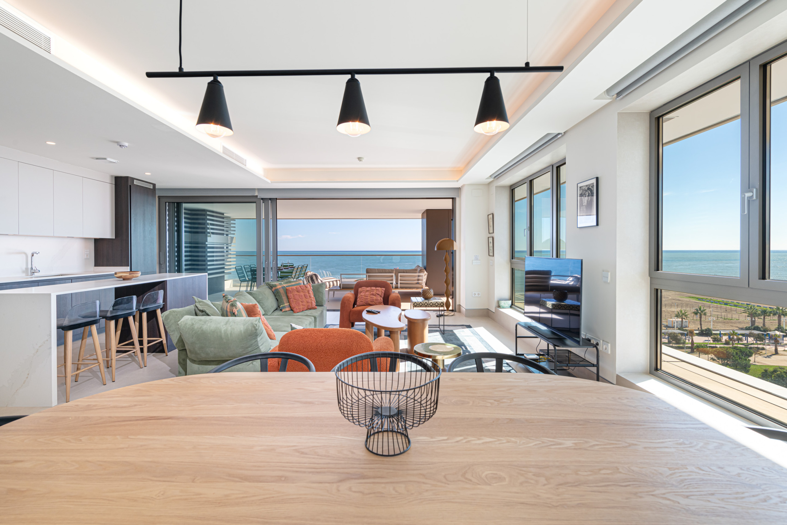 Verfügbar zur Miete sowohl für Langzeitmiete als auch für kürzere Zeiträume. Es wird nur eine Monatskaution verlangt. ANGEBOT! Preis von 4.900 € pro Monat bis zum 31. März 2026. Ab dem 1. April 2026 beträgt die monatliche Miete 7.500 €. Fragen Sie uns nach unseren personalisierten Angeboten! Wunderbares, geräumiges und luxuriöses Apartment in erster Meereslinie mit Frontblick aufs Meer! Diese Wohnung, die sich im neu eröffneten Gebäude Málaga Tower befindet, zeichnet sich durch innovative Architektur und herausragende Ausstattungen aus. Der Komplex verfügt über vier Gemeinschaftspools, einschließlich eines spektakulären Infinity-Pools im Freien auf der 21. Etage, von wo aus man einen Panoramablick auf die Stadt Málaga, die Berge und das Mittelmeer genießen kann. Zusätzlich gibt es einen beheizten Pool, einen weiteren Außenpool und einen zweiten beheizten Pool im SPA, zusammen mit einem Gemeinschaftsfitnessraum, Massageraum und Kinderspielzimmer. Die Immobilie bietet drei Schlafzimmer, zwei vollständige Badezimmer und eine Toilette sowie ein beeindruckendes Wohnzimmer mit Esstisch, Sofa, Fernseher und voll ausgestatteter offener Küche. Falls Sie Homeoffice benötigen, kann das dritte Schlafzimmer in ein Büro mit Schreibtisch und Bürostuhl umgewandelt werden. Hervorgehoben wird die großzügige private Terrasse von 40 m², perfekt eingerichtet, von der aus Sie einen schönen Blick auf die Stadt und die Berge sowie einen wunderschönen Sonnenuntergang mit warmen Farben genießen können. Obwohl sie keinen direkten Meerblick von dieser Terrasse bietet, ist die Atmosphäre ideal zum Entspannen und Sonnenuntergang beobachten. Die Wohnung verfügt auch über eine zweite Terrasse von 12 m² mit Blick auf Stadt und Berge, auf der Sie den Sonnenuntergang genießen können. Das Apartment verfügt über ein zeitgenössisches Design und hochwertige Ausstattung sowie ein Hausautomationssystem, das eine effiziente Steuerung von Beleuchtung, Rollläden und Klimatisierung ermöglicht. Darüber hinaus kann die Temperatur in jedem Raum individuell eingestellt werden, für maximalen persönlichen Komfort. Die Miete beinhaltet einen Abstellraum und einen großen Parkplatz mit Ladebereich für Elektrofahrzeuge. Es besteht die Möglichkeit, einen zweiten Parkplatz zu beantragen (Preis auf Anfrage). Seine privilegierte Lage ermöglicht es Ihnen, die Strandpromenade Antonio Banderas und den Strand zu genießen und ist zudem sehr gut mit dem Zentrum von Málaga und dem Flughafen verbunden.