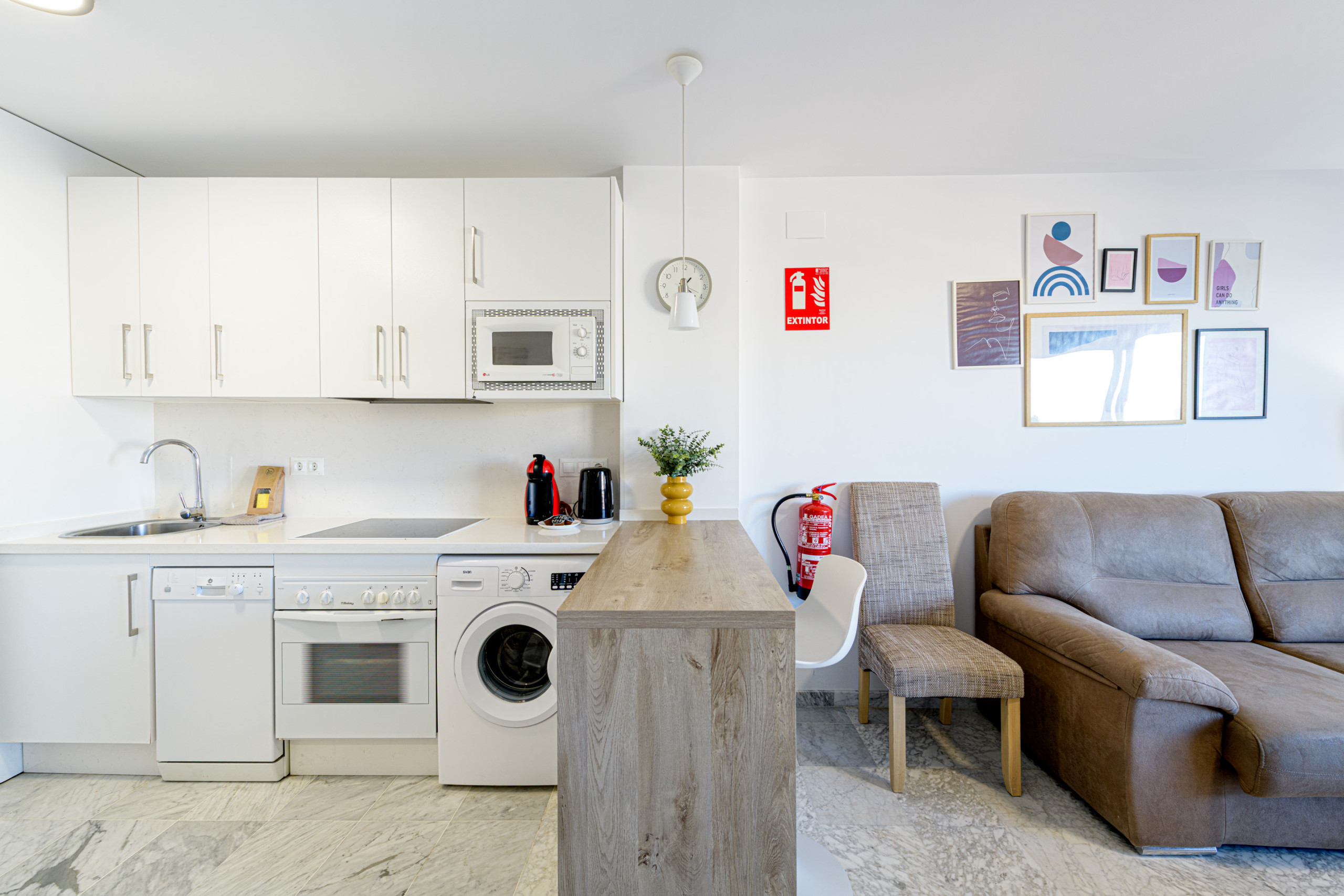 Die Wohnung ist so eingerichtet, dass sie bequem bis zu 4 Personen beherbergen kann und verfügt über ein Schlafzimmer mit einem Doppelbett sowie einem komfortablen Doppelschlafsofa im Wohnzimmer. Außerdem gibt es ein Badezimmer mit Dusche, eine voll ausgestattete Küche mit allem Notwendigen und eine angenehme Aufenthaltszone mit Fernseher, die perfekt ist, um sich nach einem Tag Sonne und Meer zu entspannen.