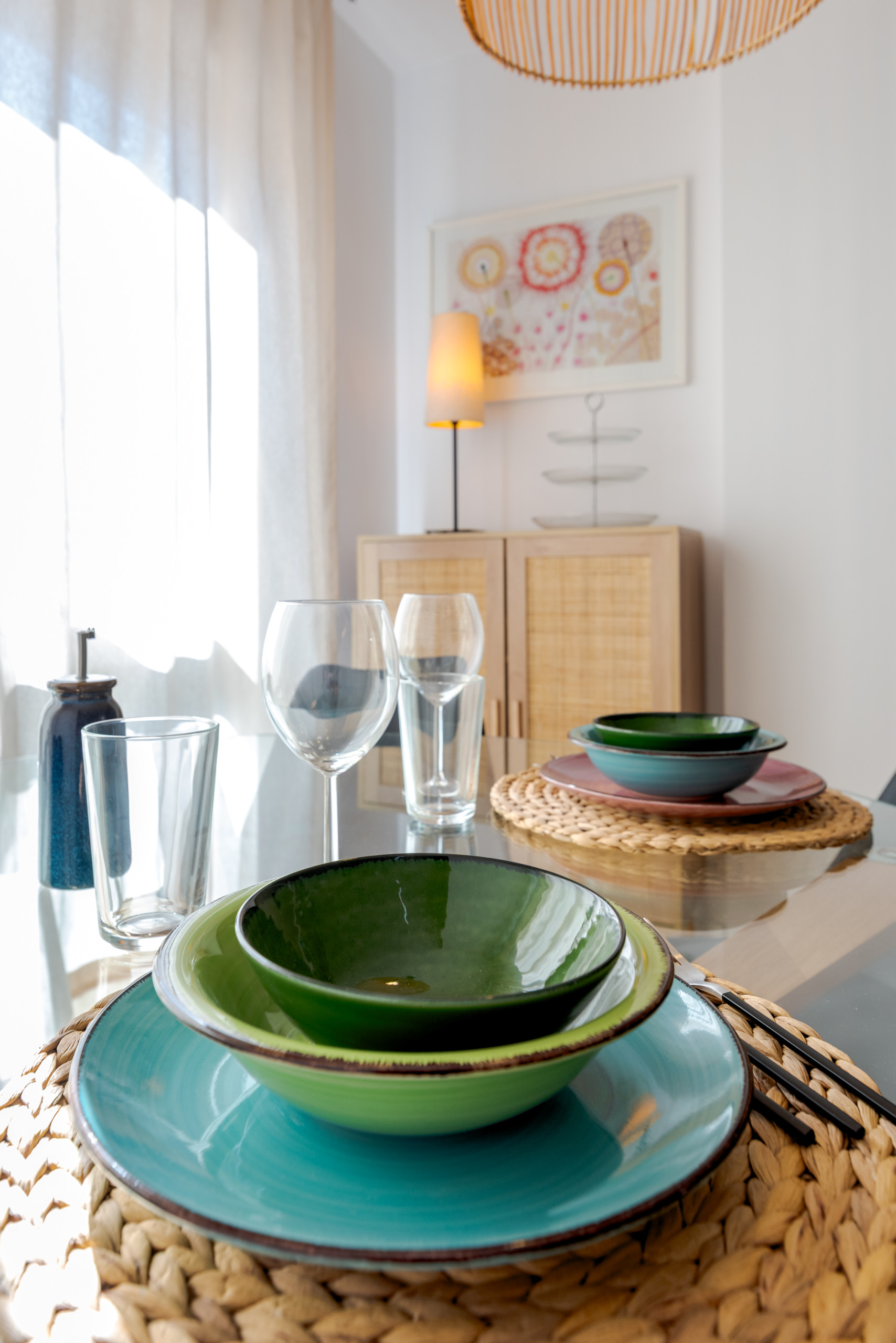 Es verfügt über ein hervorragendes Wohnzimmer mit Smart-TV, das mit einer Essbereich und einer kleinen, ausgestatteten Küche verbunden ist, die eine Induktionsplatte zum Kochen, Ofen, Mikrowelle, Kühlschrank, Kaffeemaschine, Toaster, Wasserkocher sowie Kochutensilien und ein komplettes Geschirr umfasst. Aber ohne Zweifel heben wir die kleine, aber angenehme Innenterrasse hervor, auf die man vom Schlafzimmer aus gelangt und die es Ihnen ermöglichen wird, die frische Luft zu genießen, während Sie einen Kaffee trinken oder in aller Ruhe ein Buch lesen.