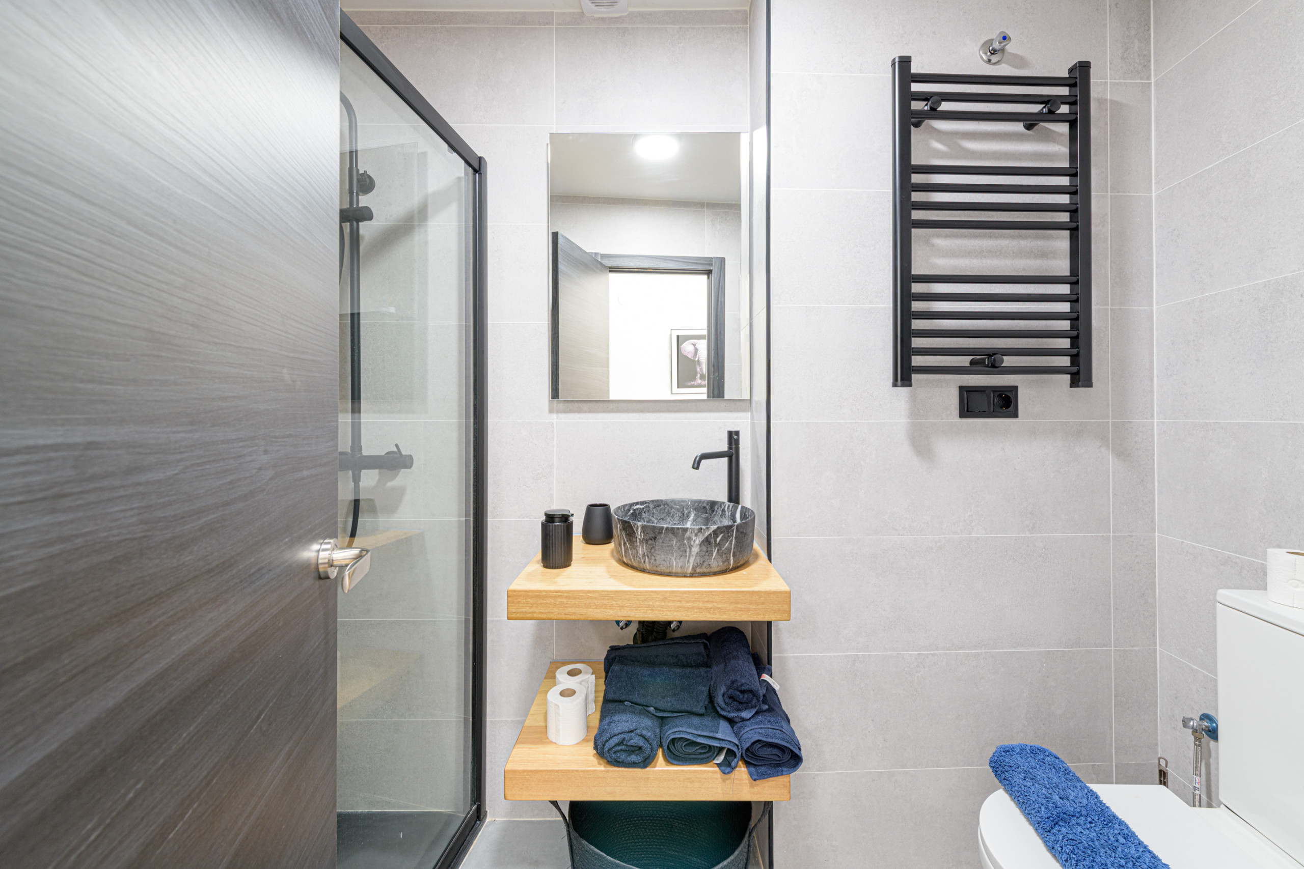 Die Wohnung verfügt über ein helles Wohnzimmer mit Smart-TV, eine separate, vollständig ausgestattete Küche, ein Schlafzimmer mit Doppelbett und ein Badezimmer mit Dusche. Zusätzlich gibt es ein Schlafsofa im Wohnzimmer, das perfekt für zwei Personen ist. Die Küche ist mit allem Notwendigen ausgestattet: Glaskeramikkochfeld, Ofen, Mikrowelle, Waschmaschine, Wasserkocher, Toaster, Kaffeemaschine und vollständigem Geschirr. Auch Bügeleisen und Wäscheleine sind zur größeren Bequemlichkeit enthalten.