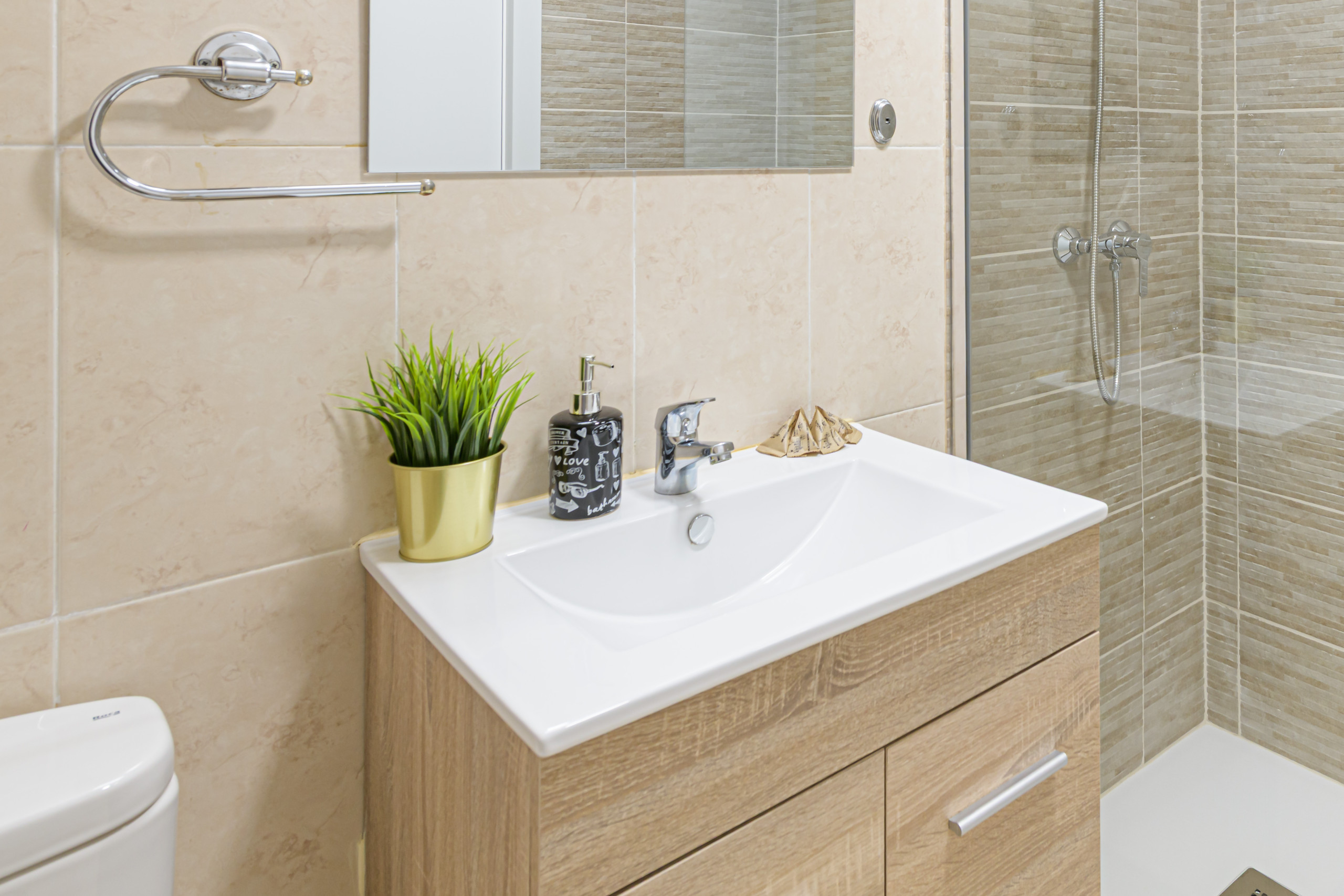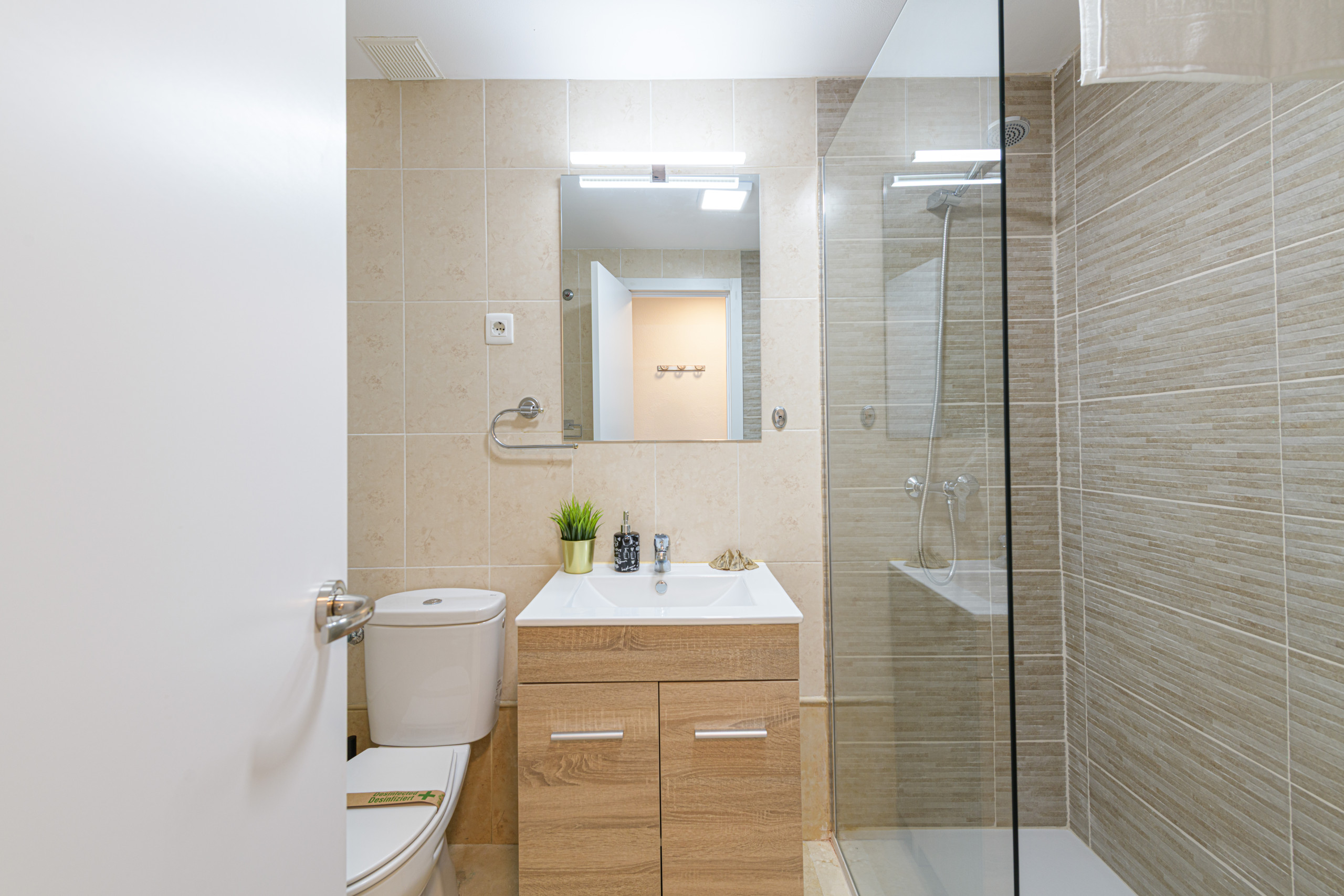 The apartment also has a recently renovated, modern and practical bathroom, with a spacious shower.