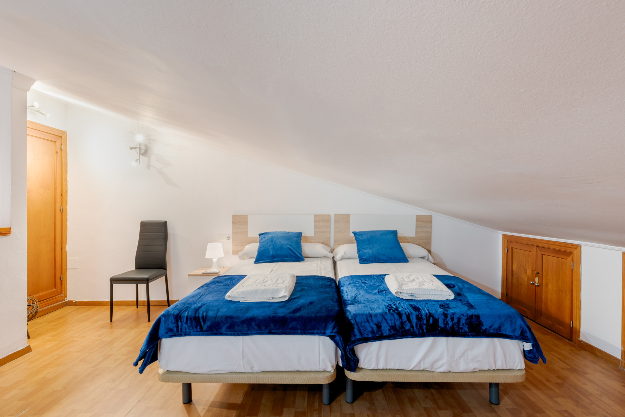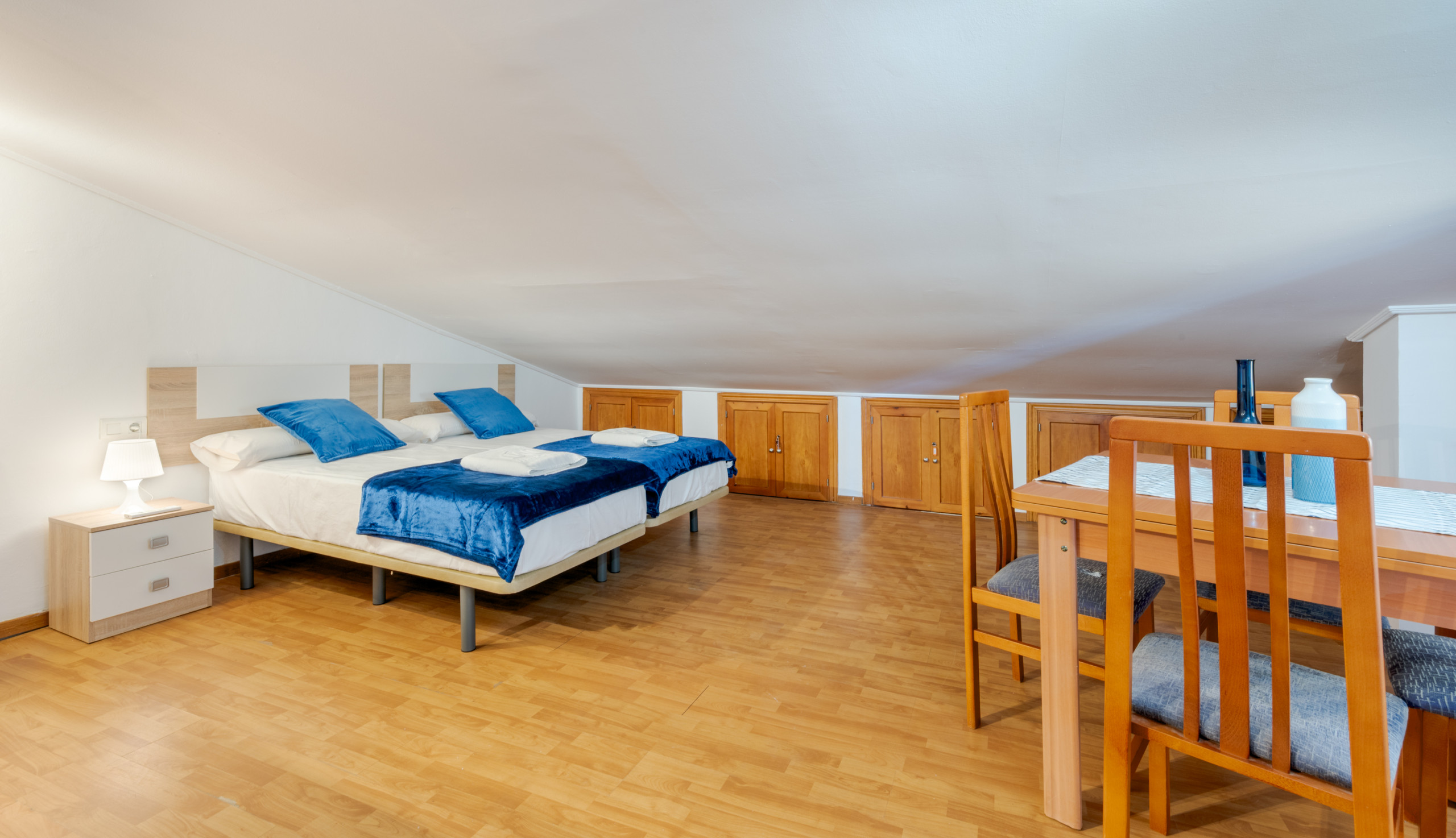 The apartment has 4 bedrooms and a maximum capacity for 8 people, of which two bedrooms with a double bed stand out, one of them on the upper floor, and two bedrooms with two single beds each.