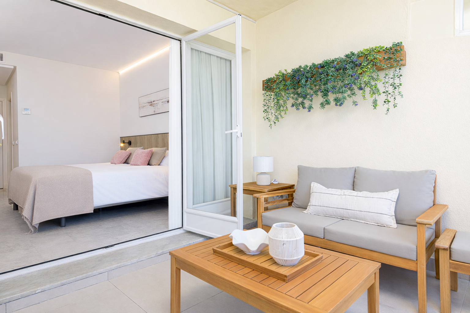 L\'appartement dispose de 2 chambres, la première avec un lit King Size et la seconde avec deux lits simples, 2 salles de bain avec baignoire, un grand salon avec un canapé-lit double. Chaque chambre est équipée d\'un grand téléviseur écran plat, d\'une connexion internet WIFI et d\'un accès à sa grande terrasse. Permettant aux familles et aux amis jusqu\'à 6 membres de profiter au maximum de notre logement, et si vous amenez un bébé, ne vous inquiétez pas, nous pouvons vous aider à obtenir un lit bébé et une chaise haute.