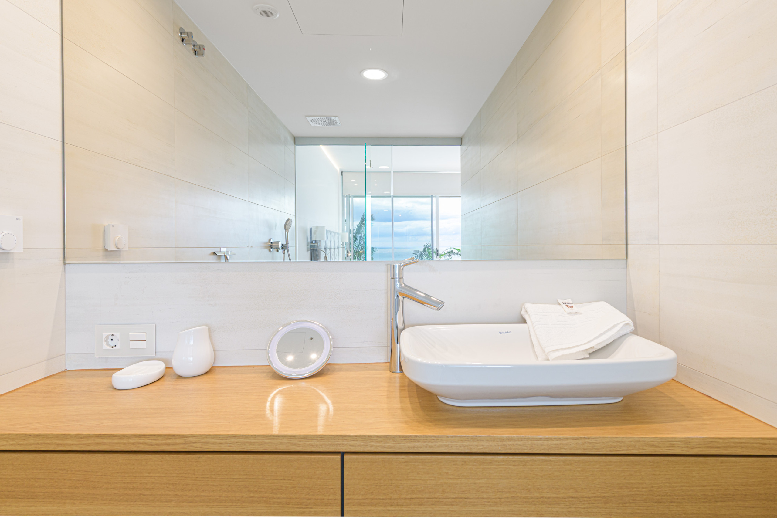 We really enjoyed our stay. Everything was great and very comfortable. The apartment has two bedrooms, two bathrooms (one of them has a bathtub with bubbles), a living room with a kitchen and a terrace. The sea view deserves a special mention, my favplus