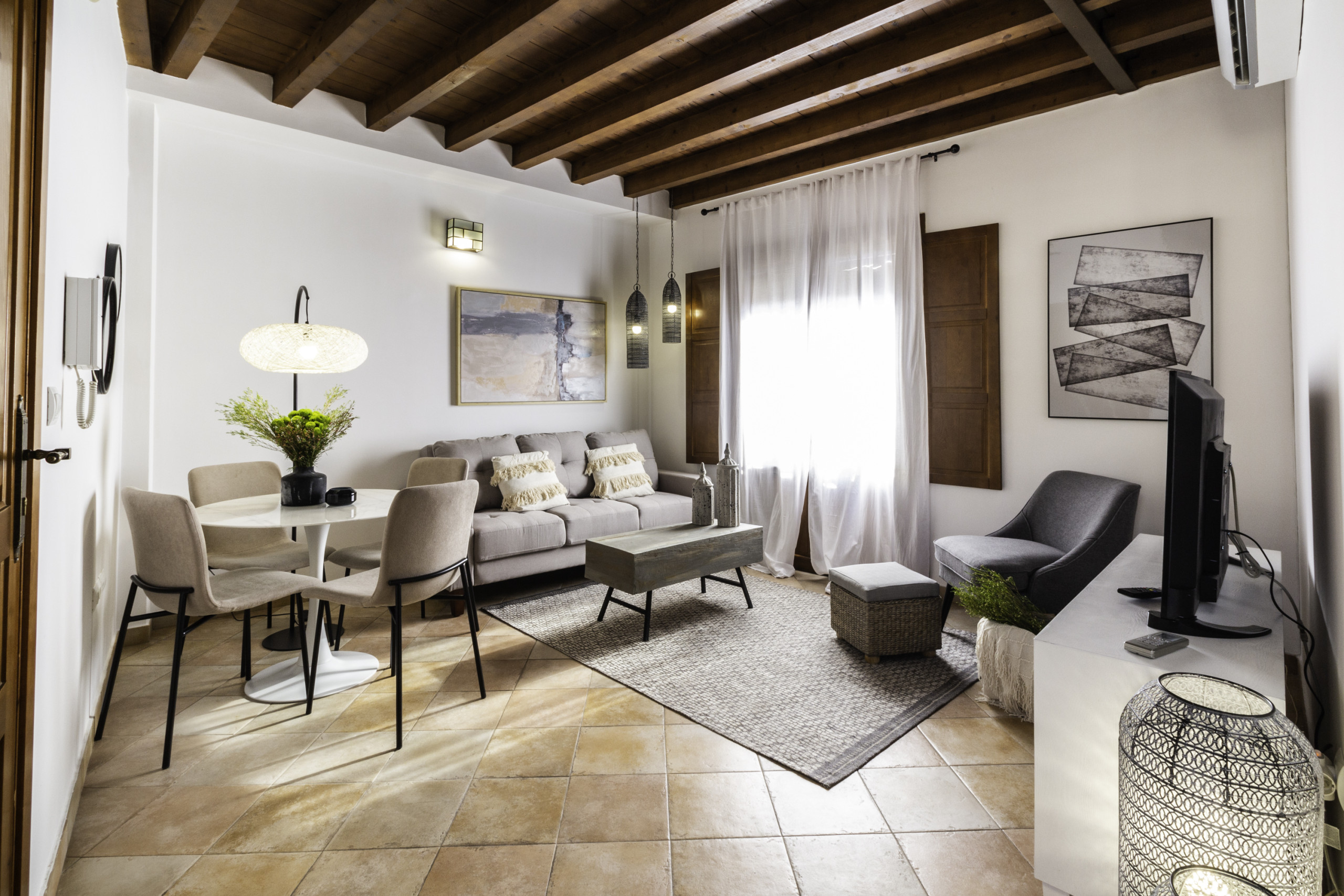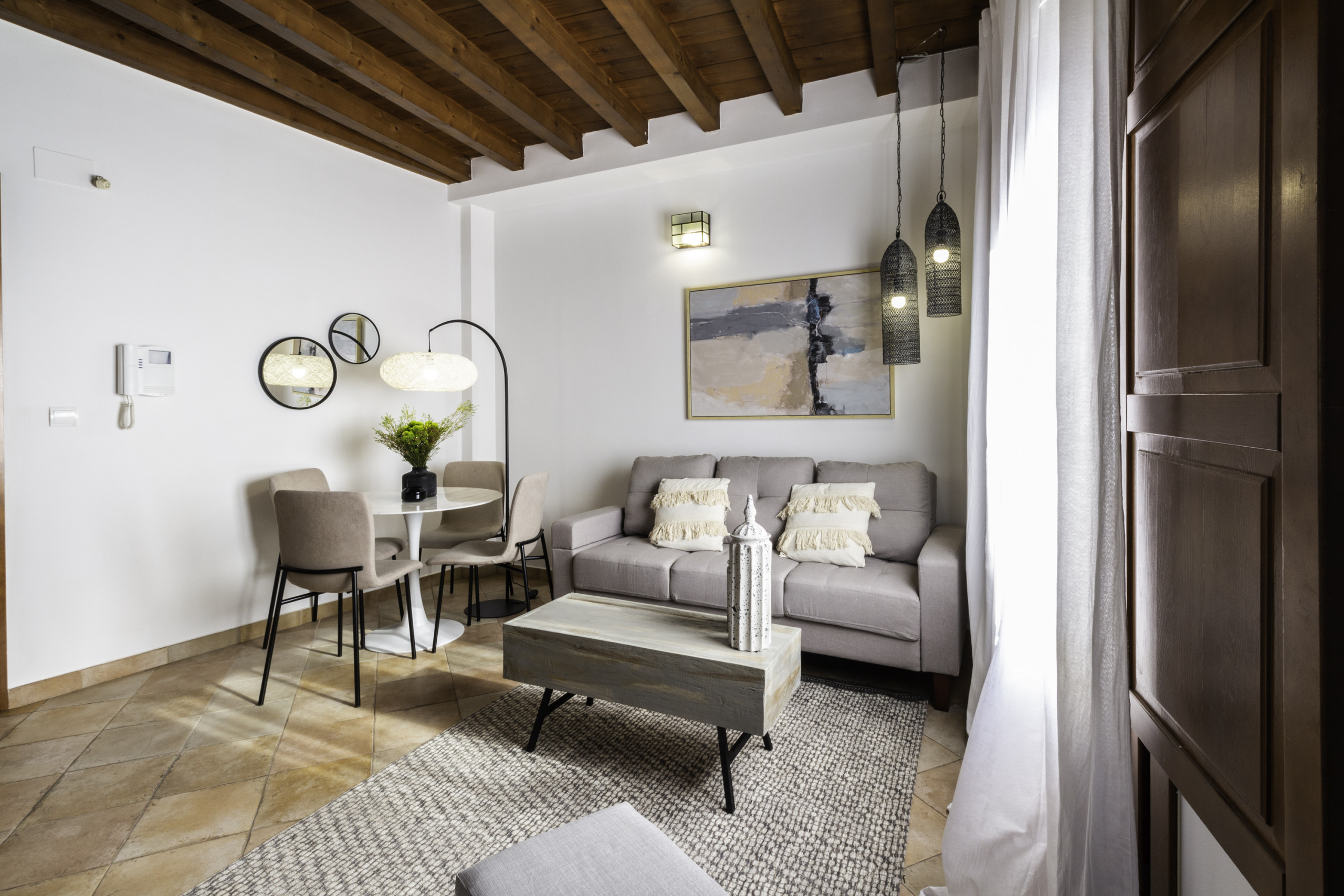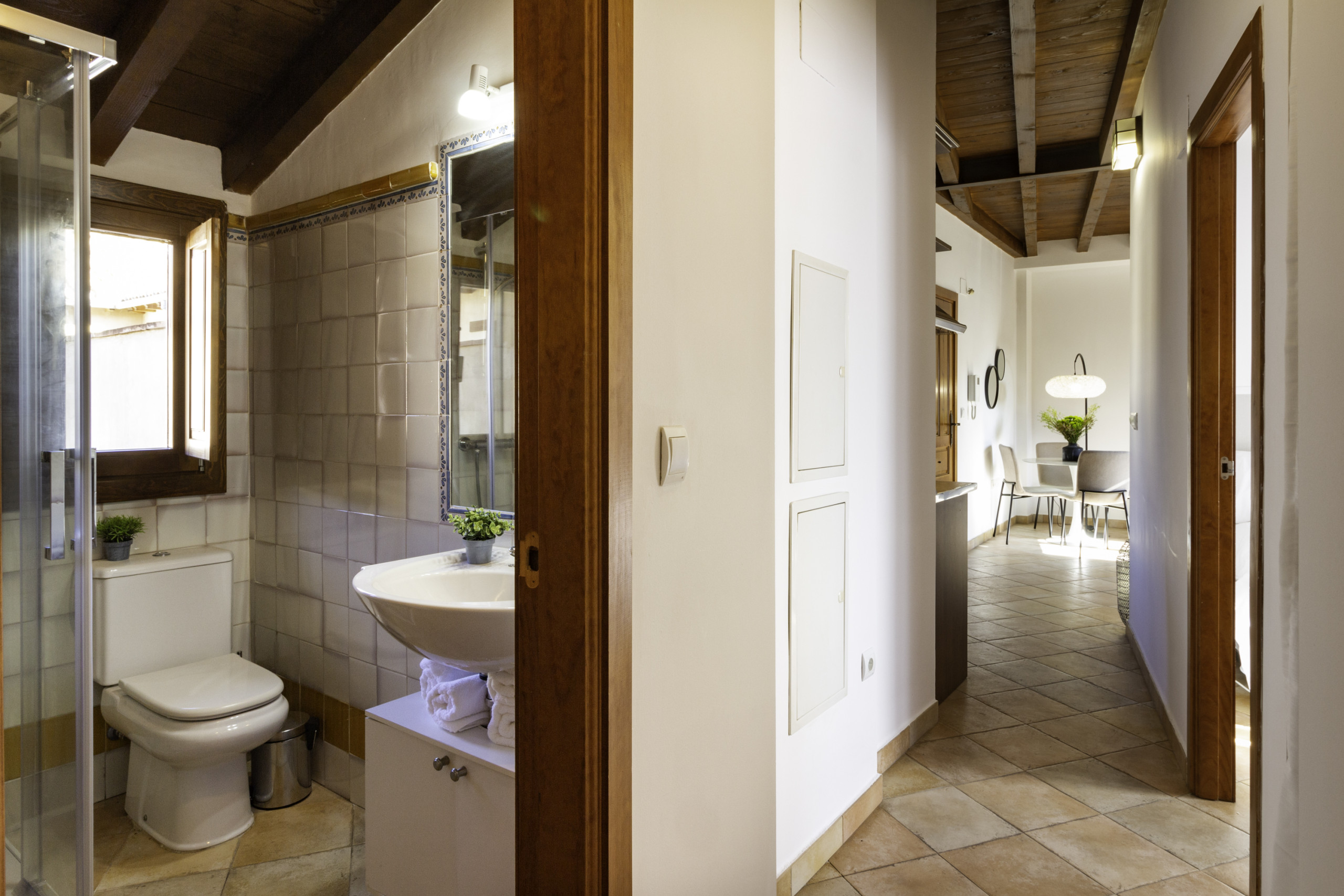 La grande valeur de l'appartement est sa terrasse privée agréable, parfaite pour profiter de petits-déjeuners au soleil ou de dîners en plein air avec vue sur la charmante cour andalouse de l'immeuble, un espace calme et très photogénique. L'immeuble dispose d'un ascenseur, d'un accès autonome par serrure à clavier et de la possibilité d'un lit de bébé, ce qui le rend idéal tant pour des escapades romantiques que pour des séjours en famille.
