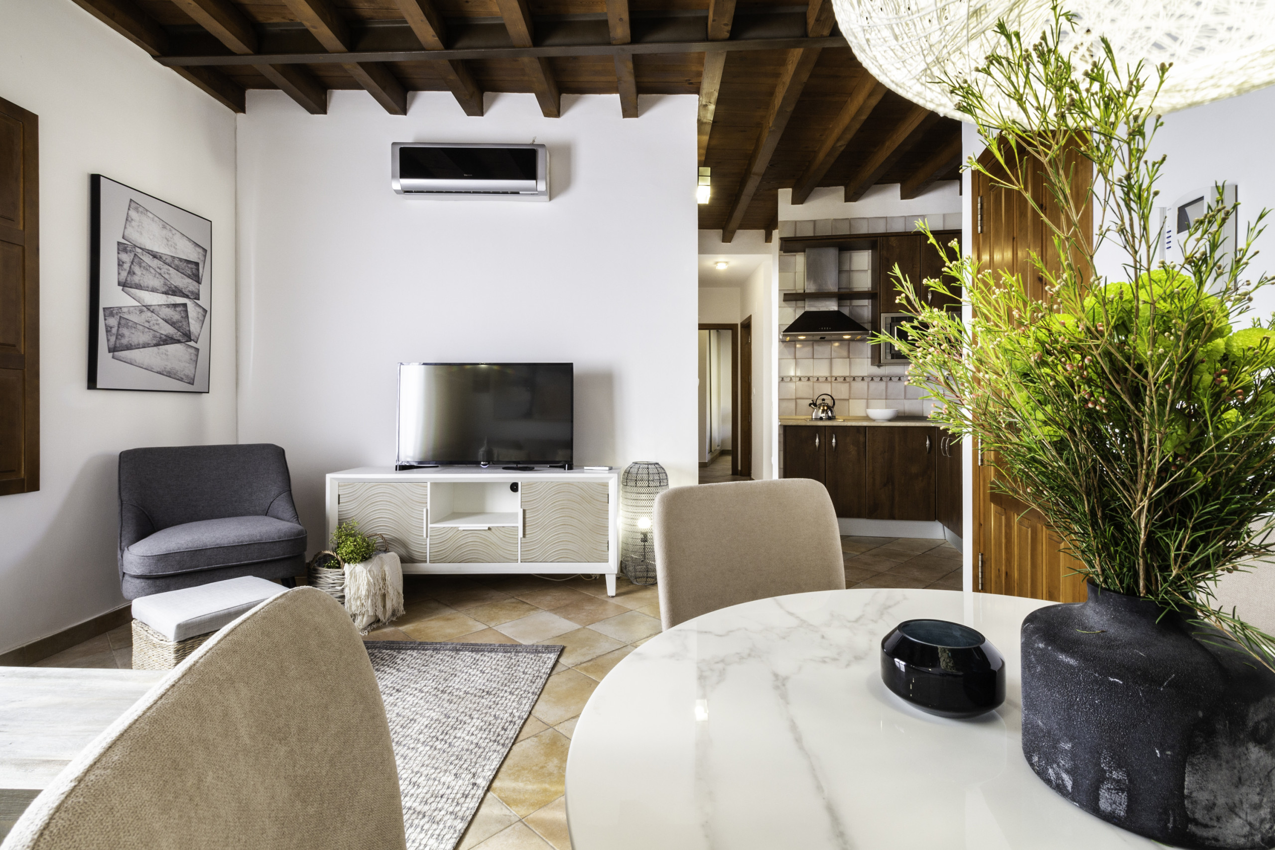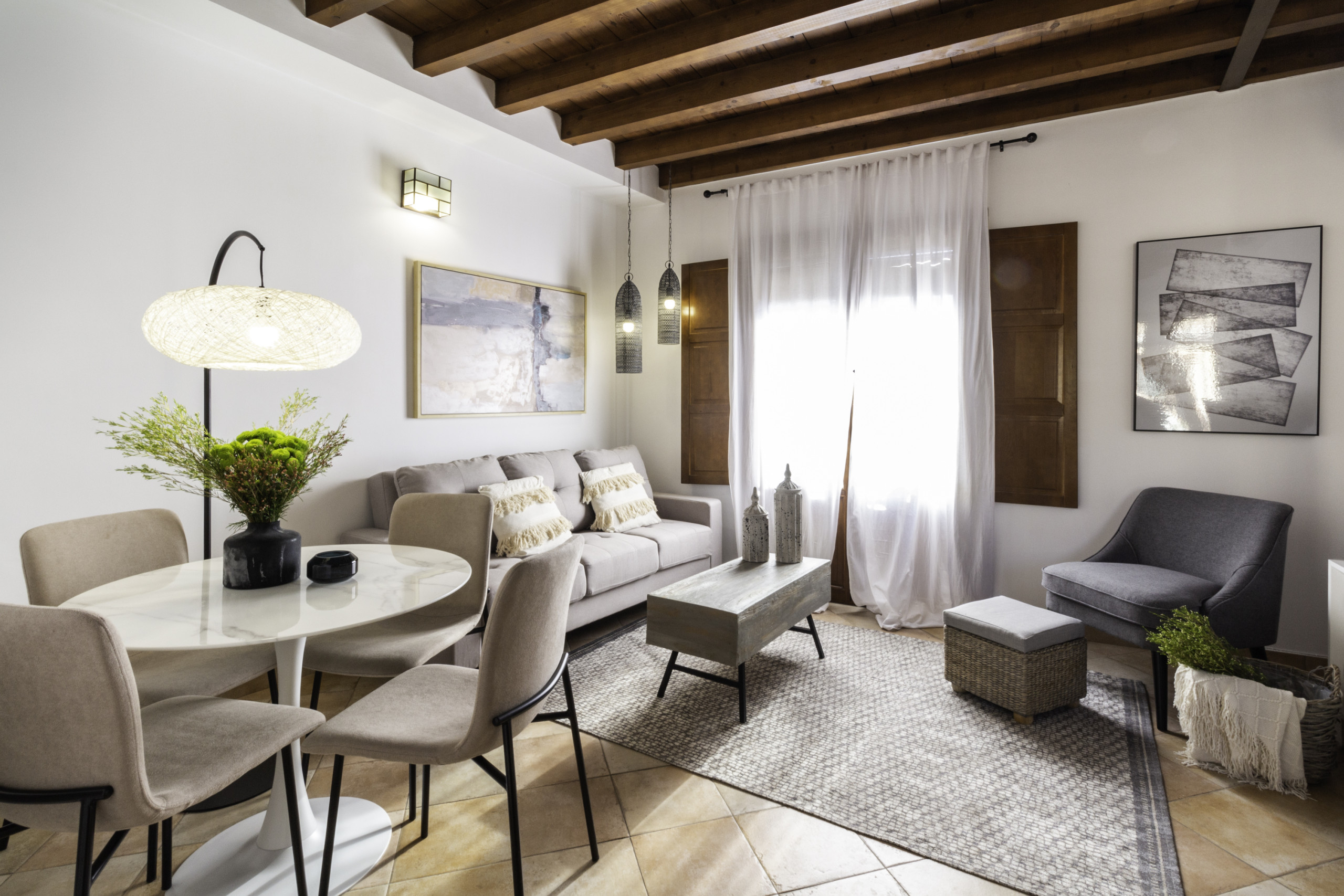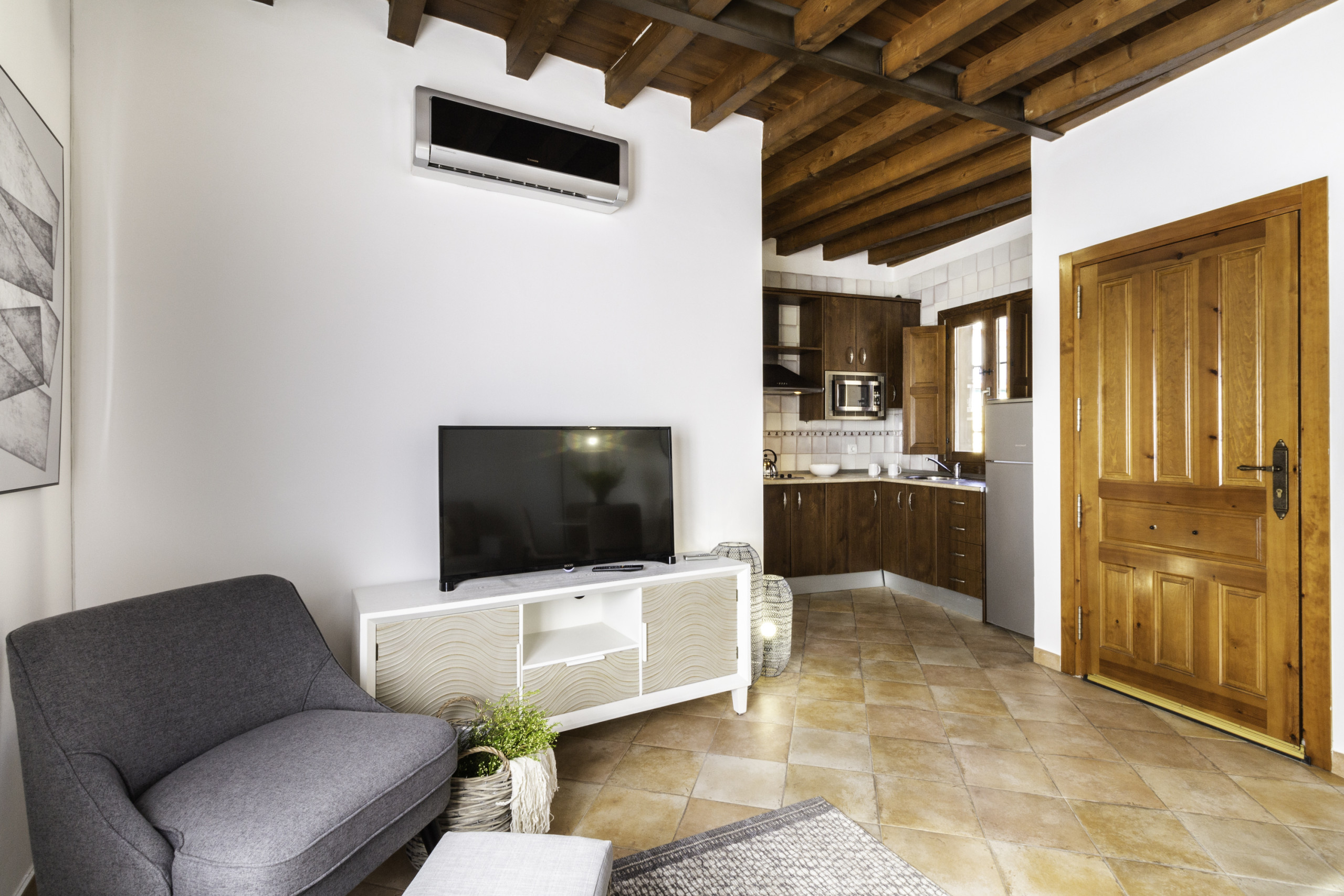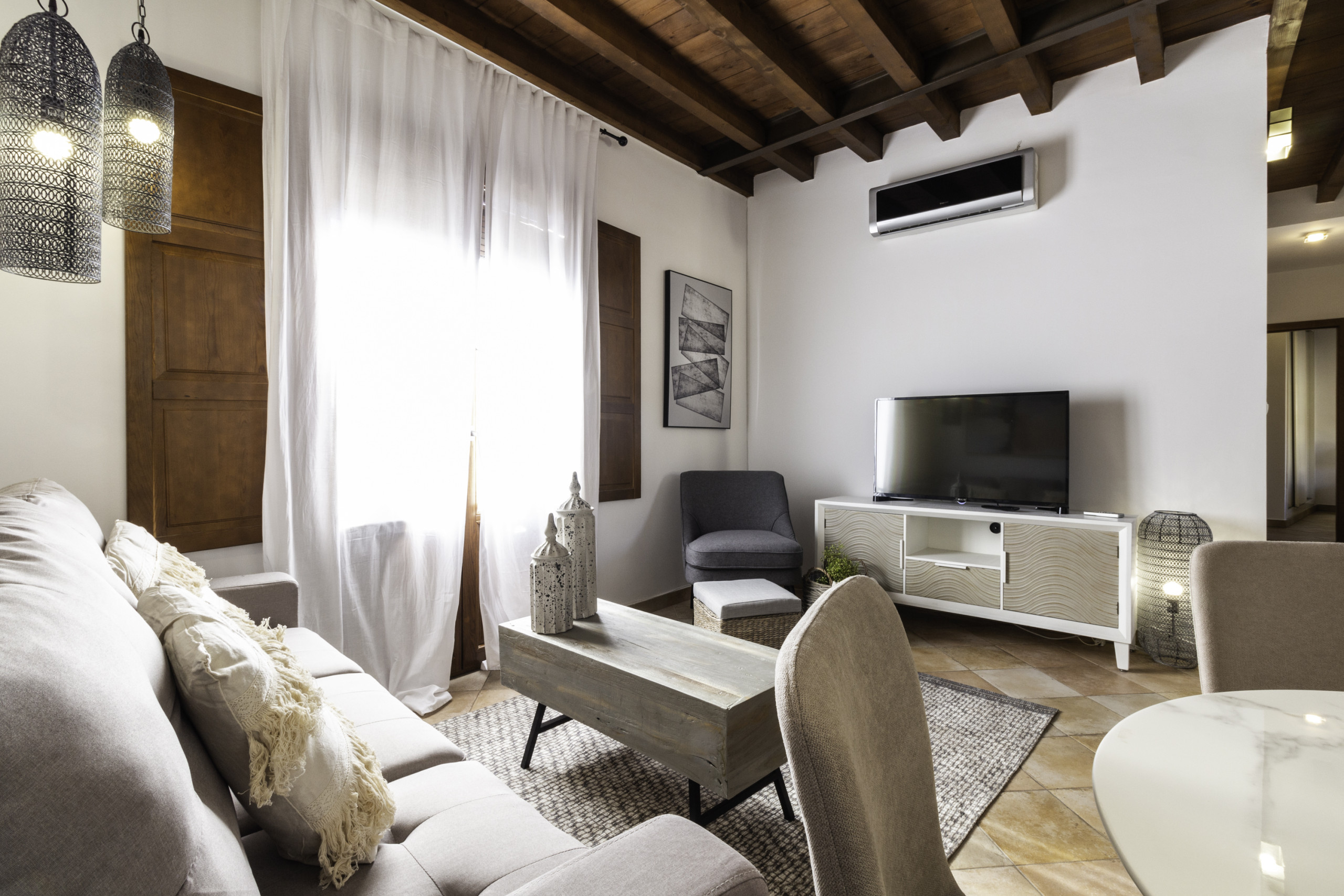 La grande valeur de l'appartement est sa terrasse privée agréable, parfaite pour profiter de petits-déjeuners au soleil ou de dîners en plein air avec vue sur la charmante cour andalouse de l'immeuble, un espace calme et très photogénique. L'immeuble dispose d'un ascenseur, d'un accès autonome par serrure à clavier et de la possibilité d'un lit de bébé, ce qui le rend idéal tant pour des escapades romantiques que pour des séjours en famille.