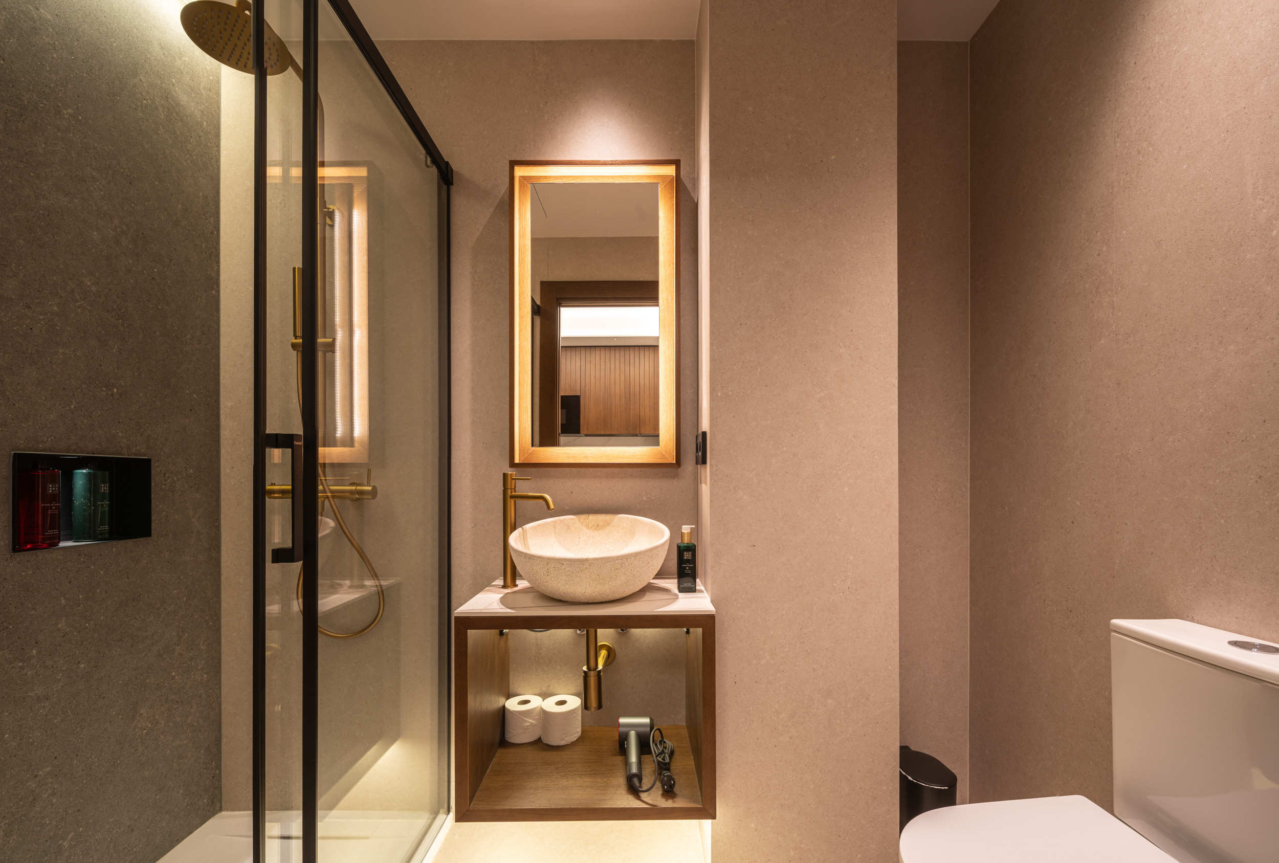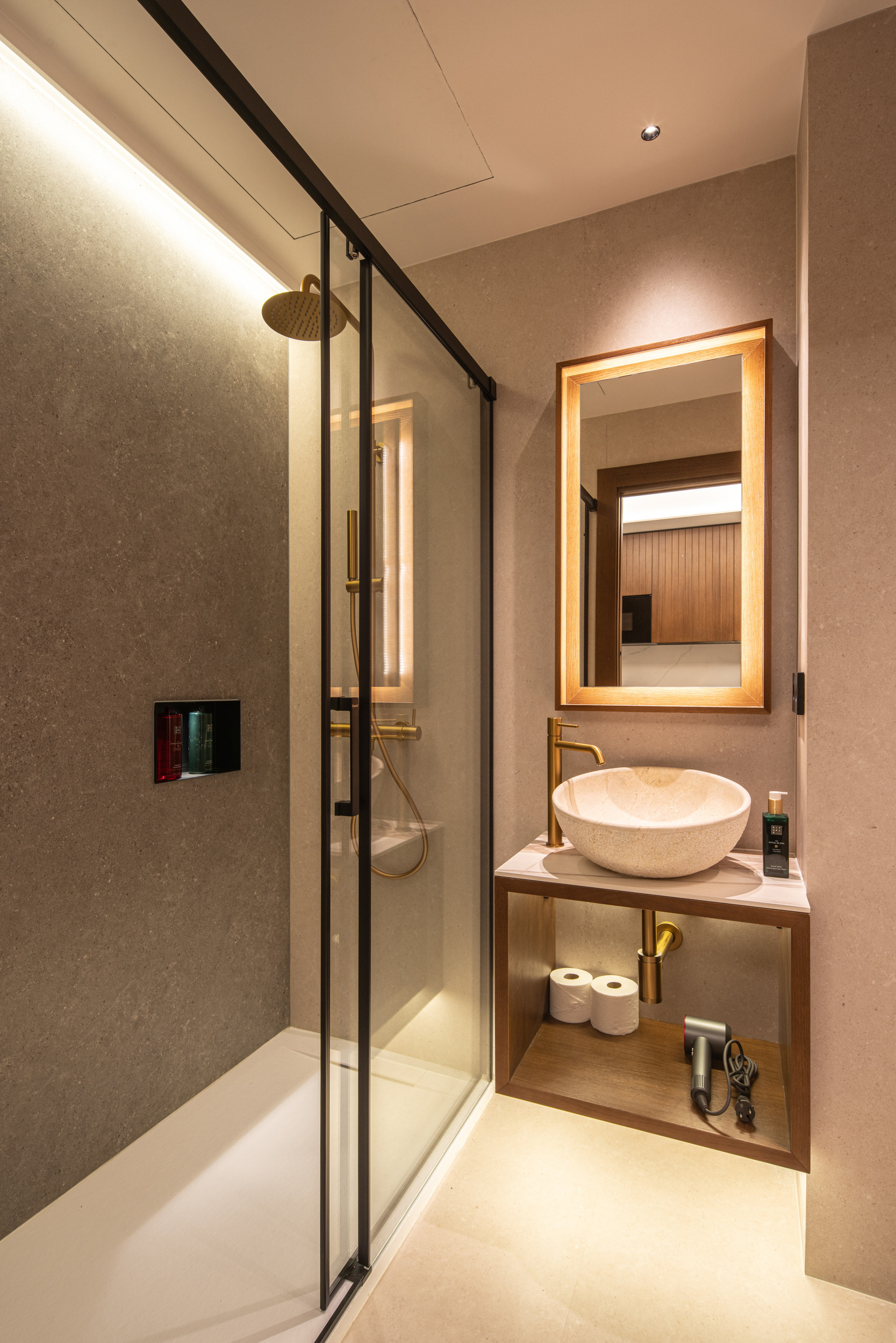 Toutes les études et tous les appartements disposent d'une salle de bain privative avec douche accessible depuis l'intérieur de la chambre. De plus, nous équipons les salles de bain de gel et de shampooing de la prestigieuse marque Rituals, d'un kit de papier toilette de bienvenue, d'un sèche-cheveux, et vous disposerez d'une serviette de main et d'une serviette de corps par personne. Également, dans les espaces communs, vous aurez un accès gratuit à un lave-linge et un sèche-linge.