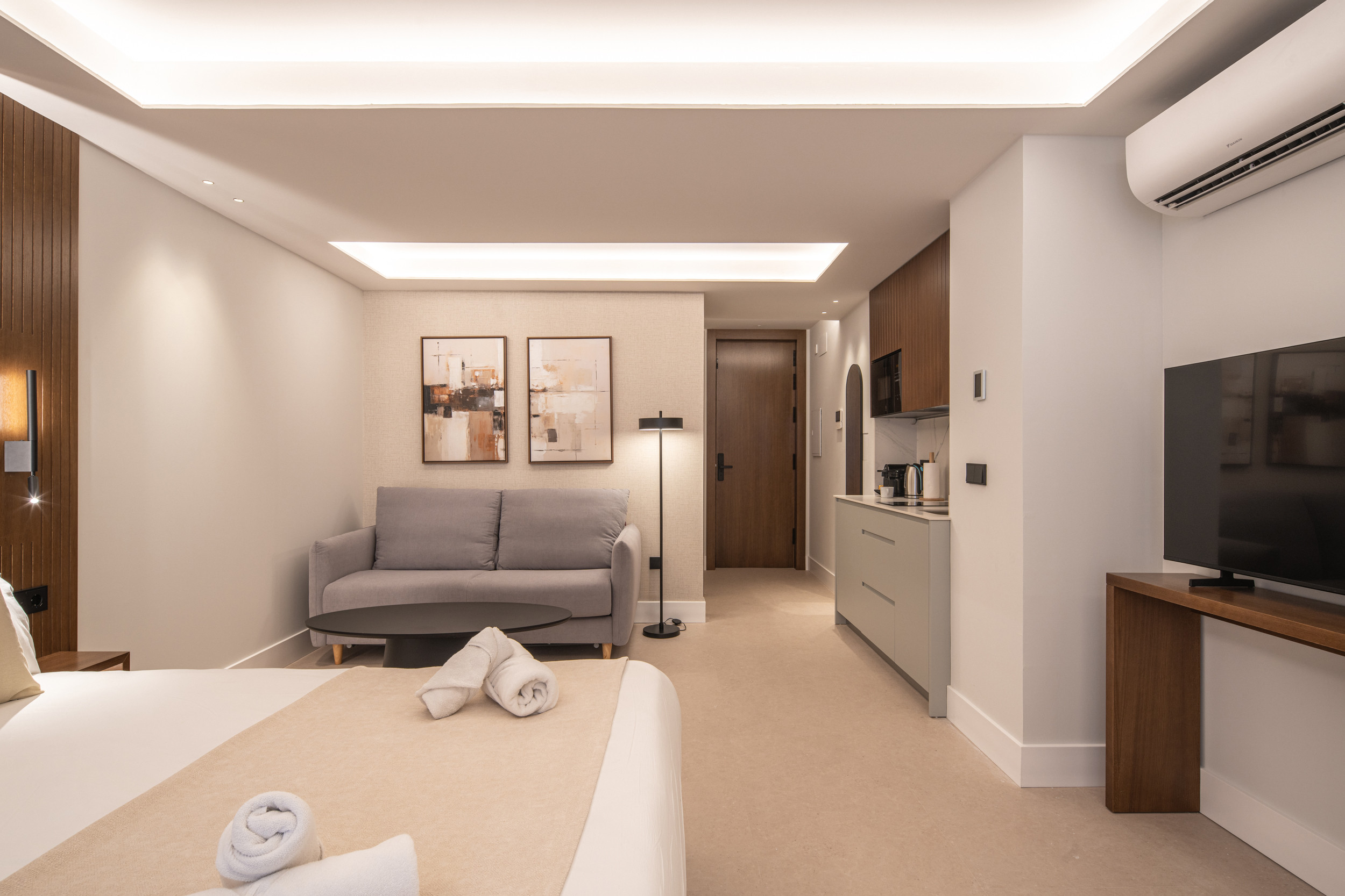 Toutes les études et tous les appartements disposent d'une Smart TV et d'une connexion WIFI à haute vitesse, parfaite pour profiter de films, partager des photos ou rester connecté avec les familles et les amis. Vous pourrez regarder la télévision publique espagnole et si vous avez un compte Netflix, HBO ou Prime Video, vous pourrez vous connecter avec votre utilisateur pendant votre séjour.