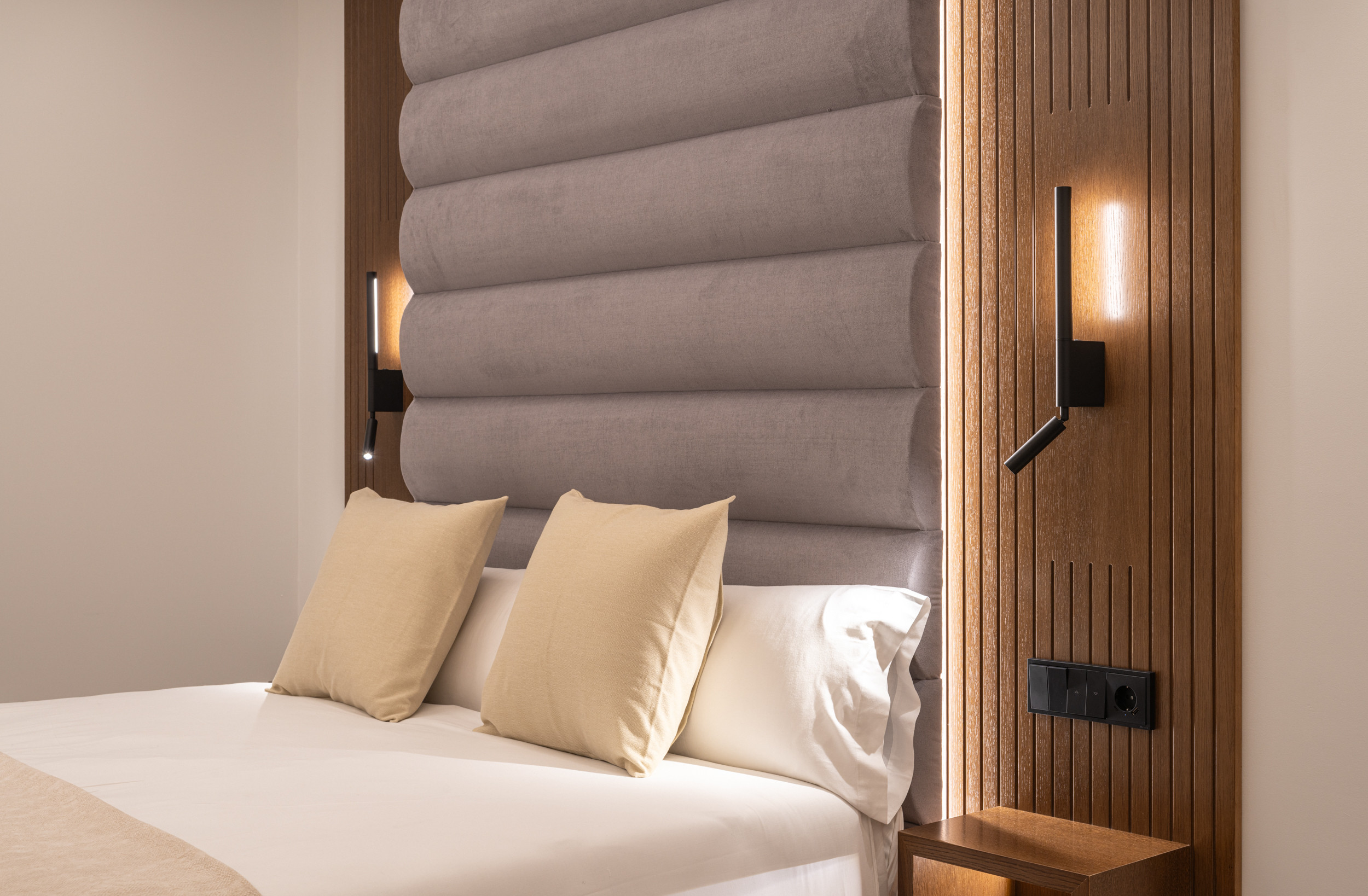 En plus d'un lit confortable, ils disposent également d'un grand canapé-lit double de 1,40*2 mètres, adapté pour que deux adultes puissent même y dormir, la taille et la disposition des lits peuvent varier selon l'appartement ou le studio, vous pourrez vous informer plus en détail dans la chambre que vous choisirez, tous disposent d'un canapé-lit à l'exception de l'appartement 3. Ce studio que vous regardez maintenant dispose de deux lits individuels de 90*2m plus un canapé-lit double.